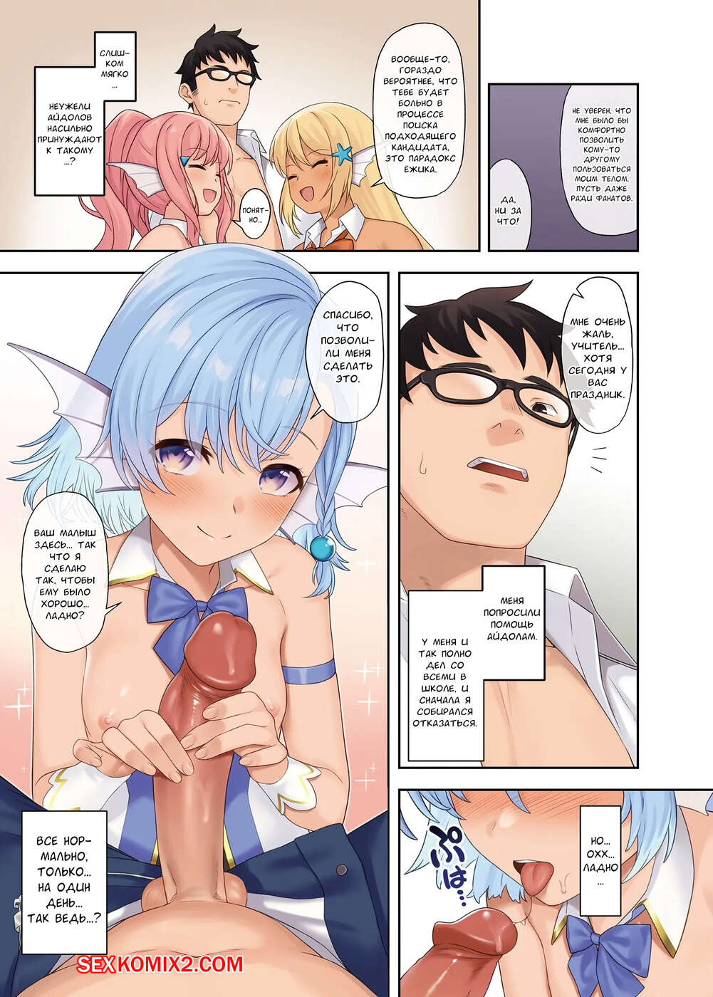 Порно комикс Помощь Кохаю. Часть 11. Enjo Kouhai. Три горячие девушки предложили свои киски для секса. Парни как дикие начали их вылизывать и вставлять свои отростки поглубже, двигая в параличе секса.