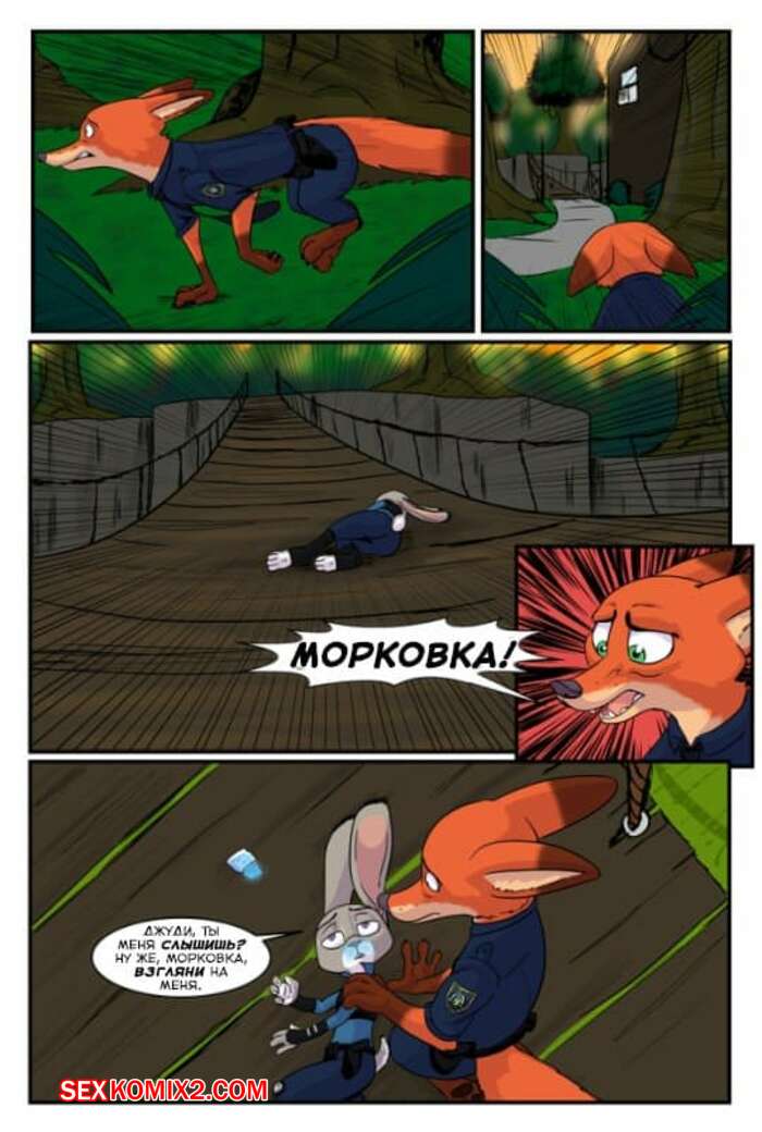 Порно комикс Zootopia. Треснувшая маска. Часть 2. The Broken Mask Горячая красотка крольчиха оказалась в лесу наедине со своим дружком лисом и они решили повеселиться. Парень стал ласкать пизденку девушки, после чего хорошенько ее выебал.