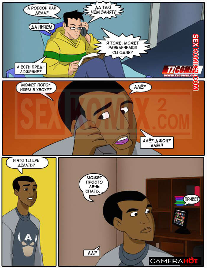 Порно комикс Горячая камера. Camera Hot. HQPorno. TZComiX Парень вернулся домой после тяжелого дня и решил подрочить, включив онлайн шоу сисястой милфы брюнетки. Она пришла к нему в комнату и стала у него сосать, после чего дала ему себя выебать.