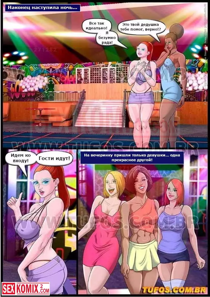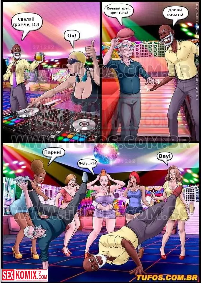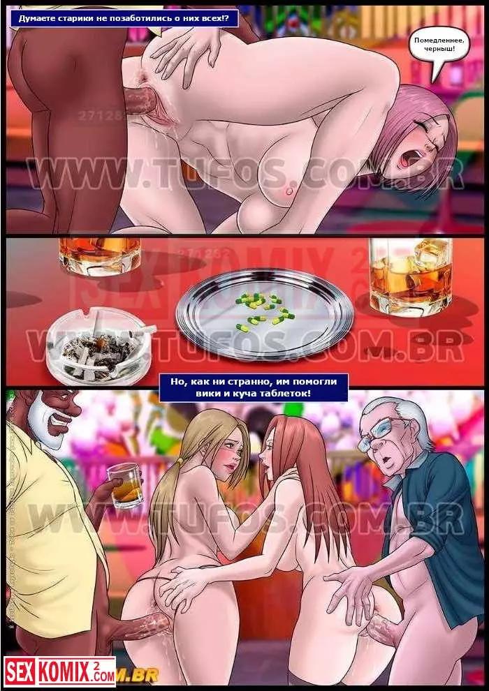 Порно комикс Удалые старички. Часть 10. День рождение. Двое развратных стариков устроили шикарный день рождения для одного из них и пригласили девушек. В разгар вечеринки они трахнули красоток.
