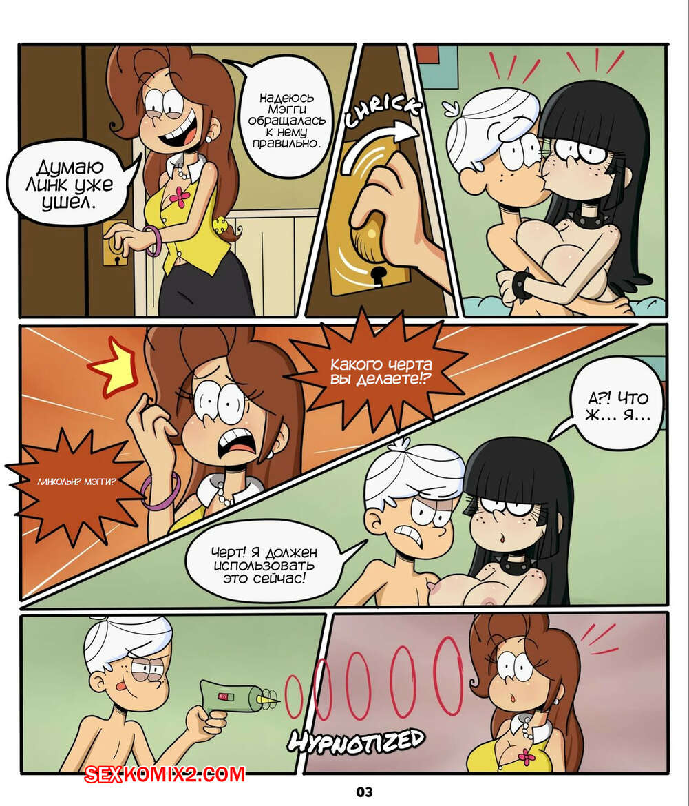 Порно комикс Шумный Дом. Грязные дела братьев. The Loud House. Brothers Dirty Deeds Парень хотел трахнуть девушку своей сестры, но она была против. Он ее загипнотизировал и стал с ней трахаться, но им помешала сестра парня и она тоже попала под гипноз.