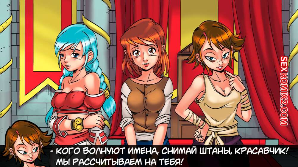 Порно комикс Герои гарема. Часть 5. Harem Heroes Парень приплыл на новый остров, где встретился с горячими сексуальными красотками. Девушки разделись перед парнем и стали сосать его большой хуй, после чего дали ему себя хорошенько выебать.