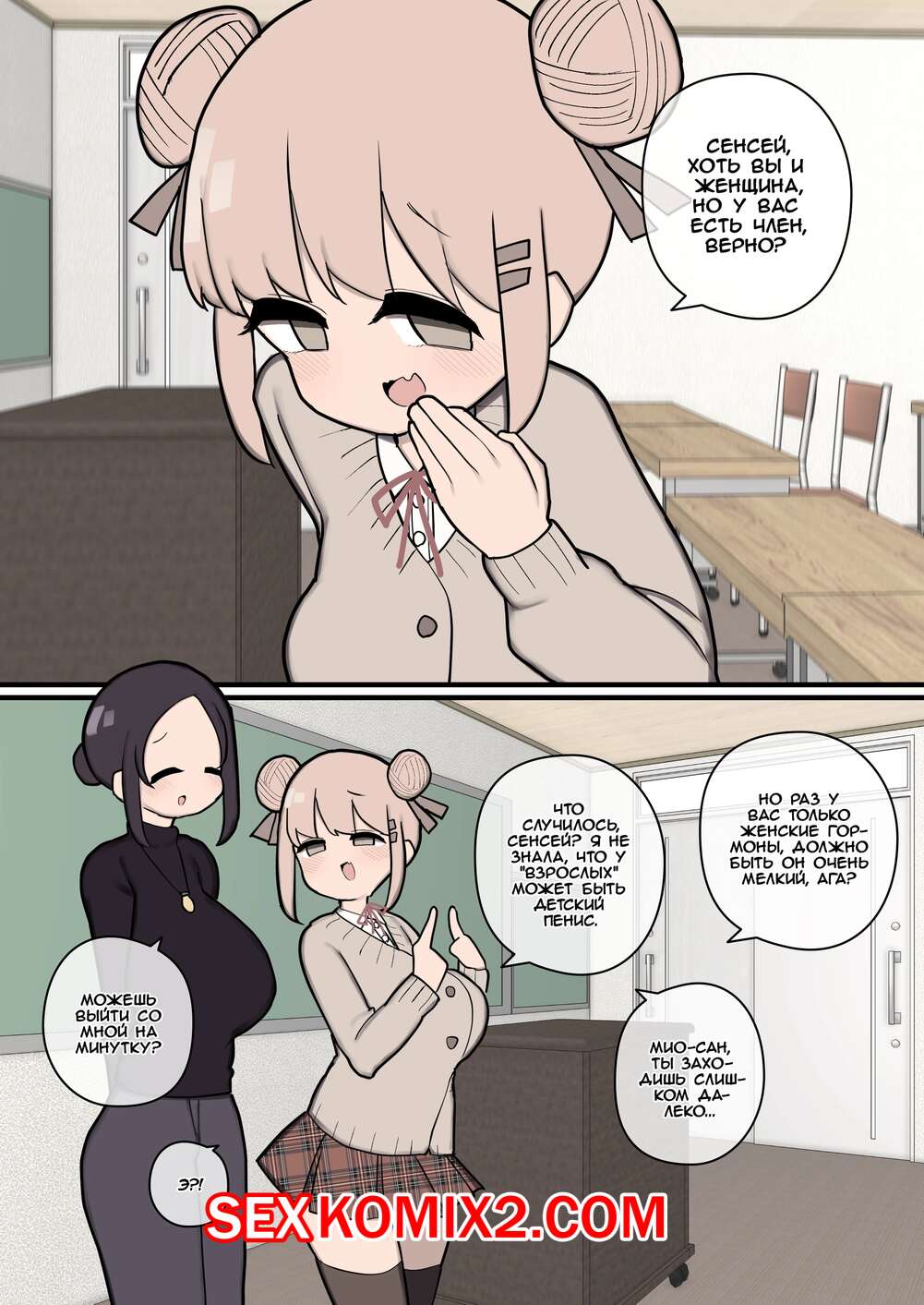 Порно комикс Сенсей, у вас ведь есть член, хоть вы и женщина. Momomo Молодая блондинка узнала, что у ее училки есть член. Красотка быстро разделась перед учительницей и дала ей себя хорошенько выебать и кончить ей в пизденку.