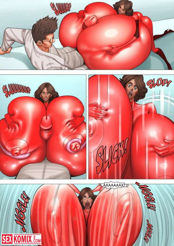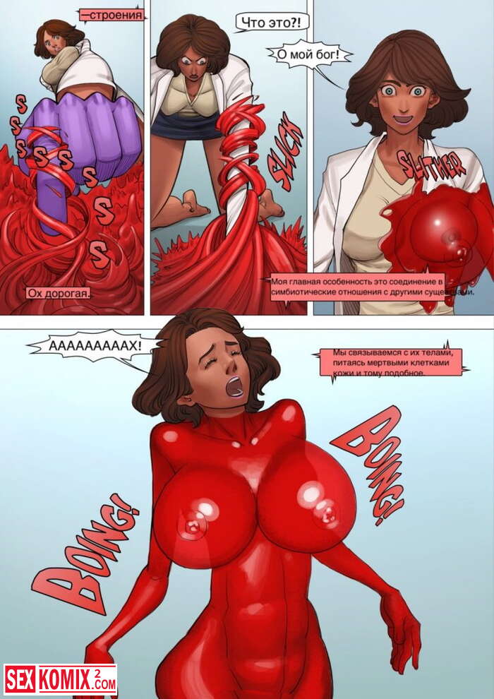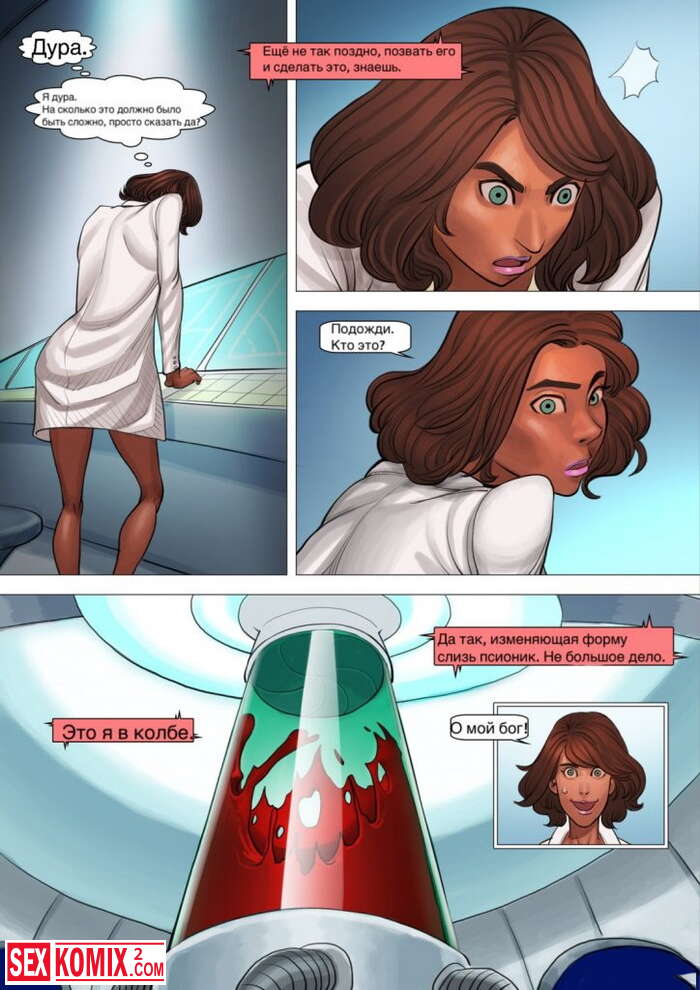 Порно комикс Время для слизи. Женщина ученый уронила склянку с розовой слизью, она коснулась её и почувствовала прилив сил. Её груди начали расти.