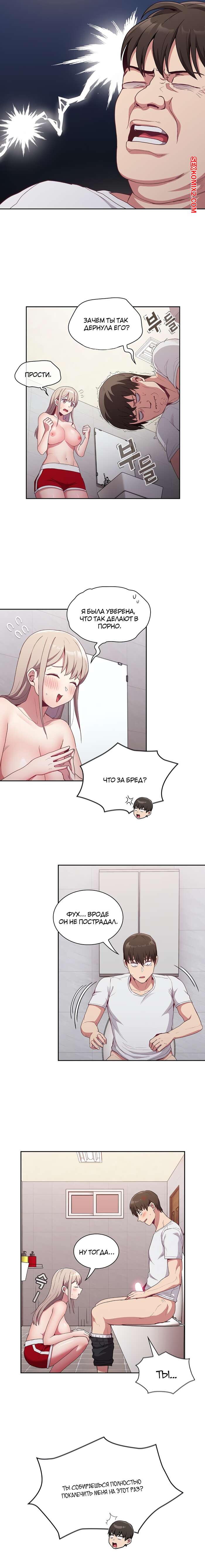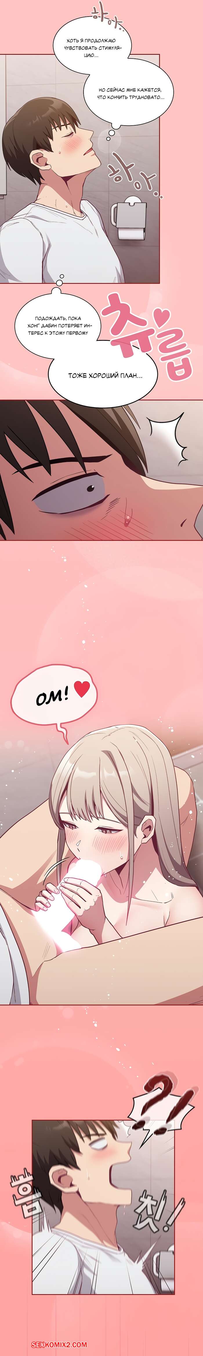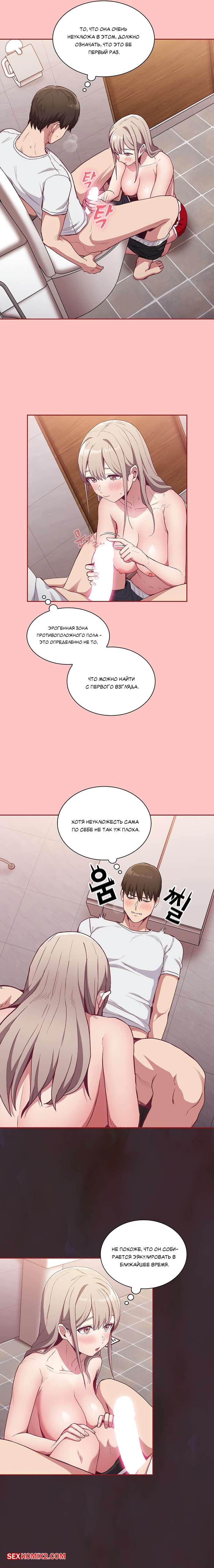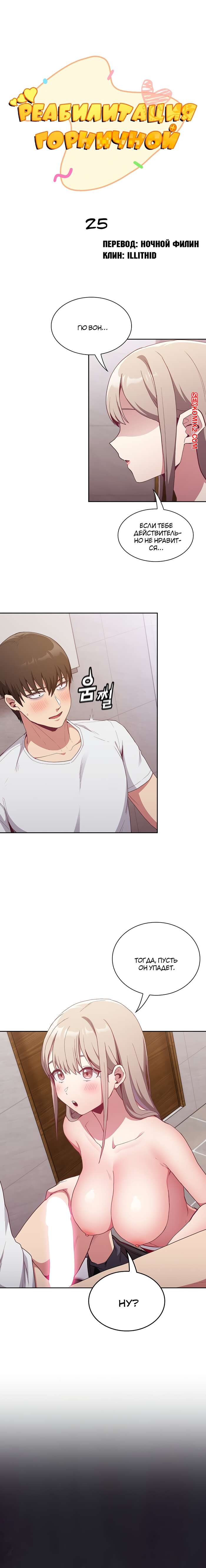 Порно комикс Реабилитация горничной. Части 24 и 25 и 26. Maid Rehabilitation Сексуальная блондинка была очень возбуждена и решила повеселиться со своим дружком. Она отвела парня в туалет, где разделась перед ним и стала сосать его большой хуй, от чего он быстро кончил.