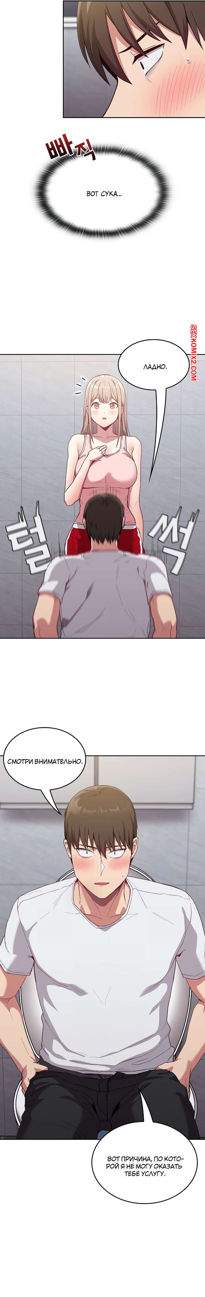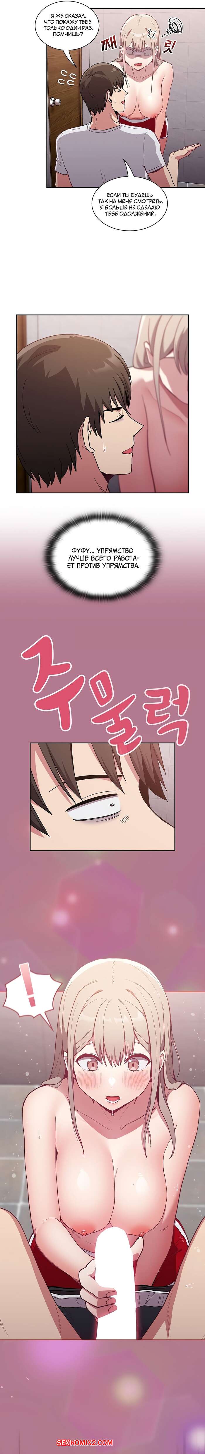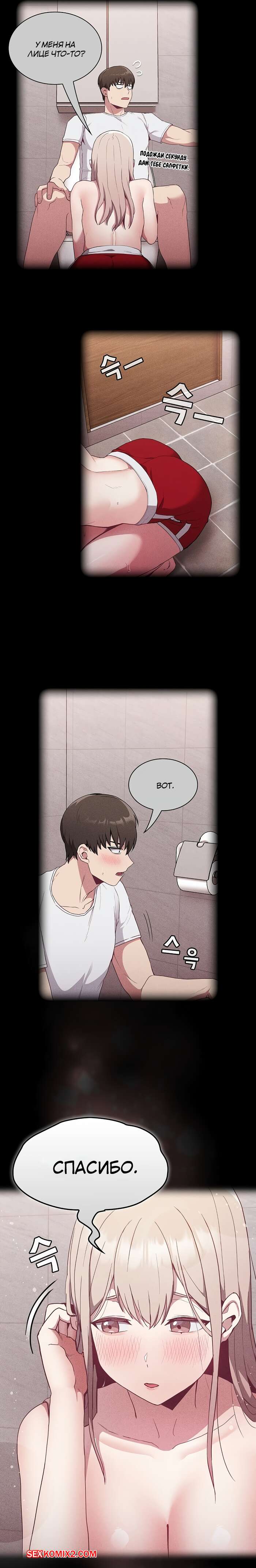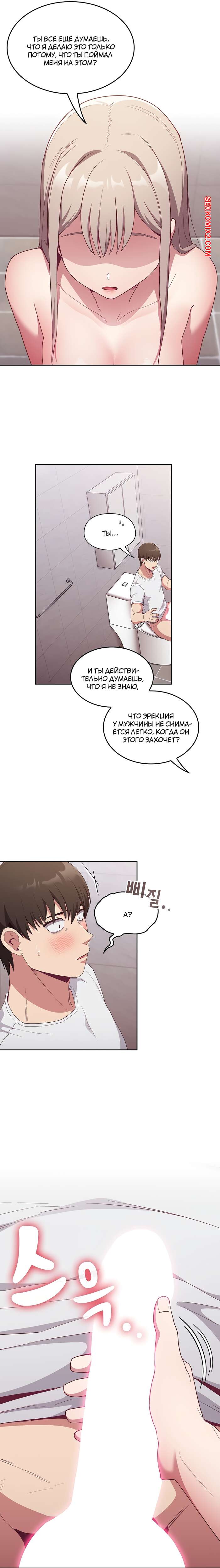 Порно комикс Реабилитация горничной. Части 24 и 25 и 26. Maid Rehabilitation Сексуальная блондинка была очень возбуждена и решила повеселиться со своим дружком. Она отвела парня в туалет, где разделась перед ним и стала сосать его большой хуй, от чего он быстро кончил.