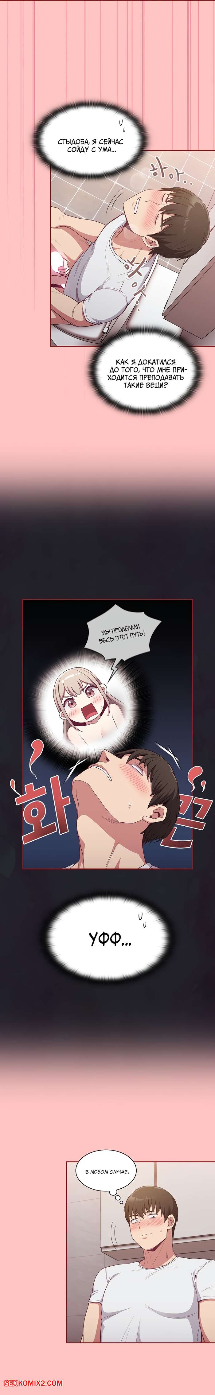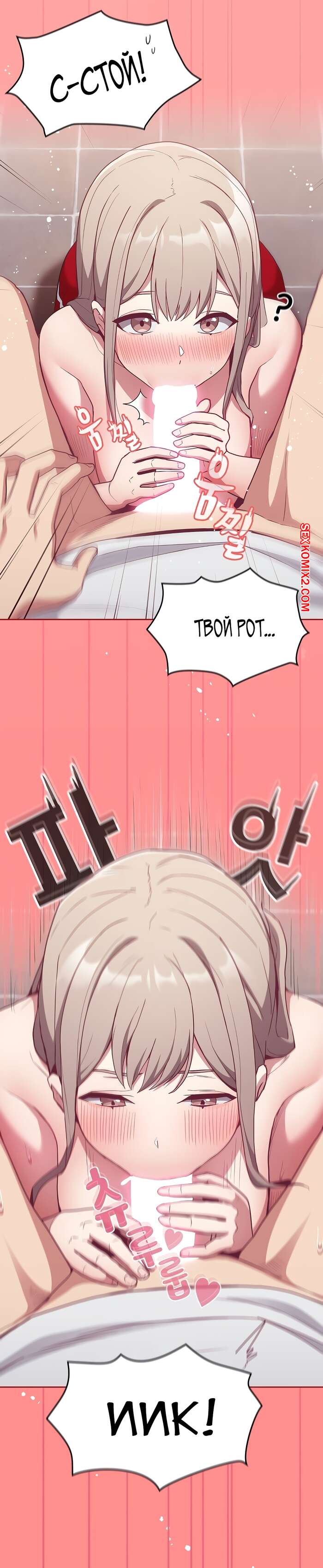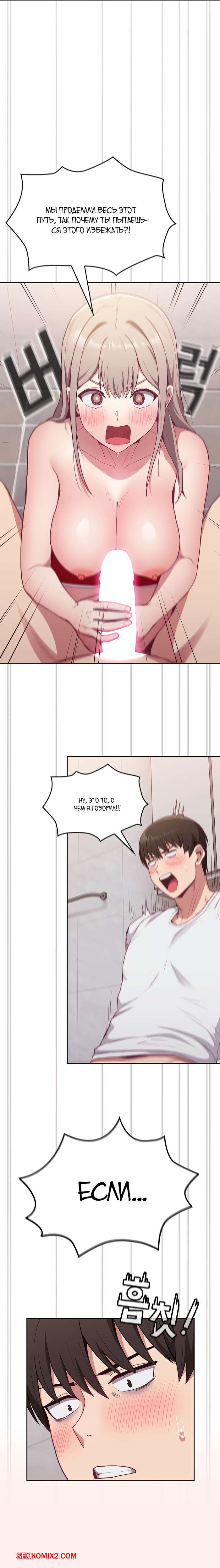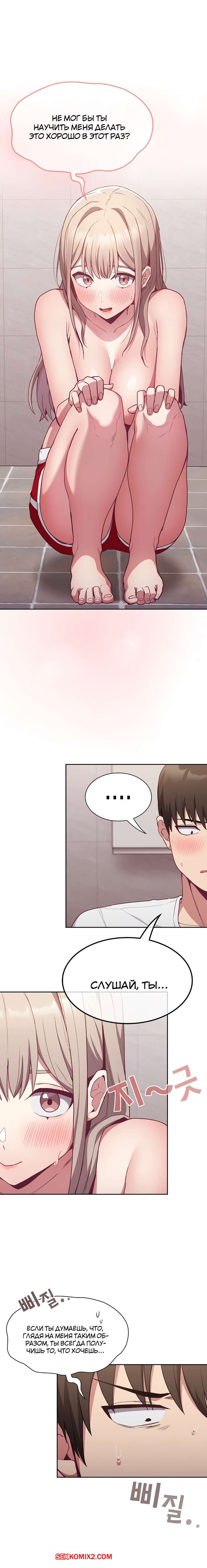 Порно комикс Реабилитация горничной. Части 24 и 25 и 26. Maid Rehabilitation Сексуальная блондинка была очень возбуждена и решила повеселиться со своим дружком. Она отвела парня в туалет, где разделась перед ним и стала сосать его большой хуй, от чего он быстро кончил.