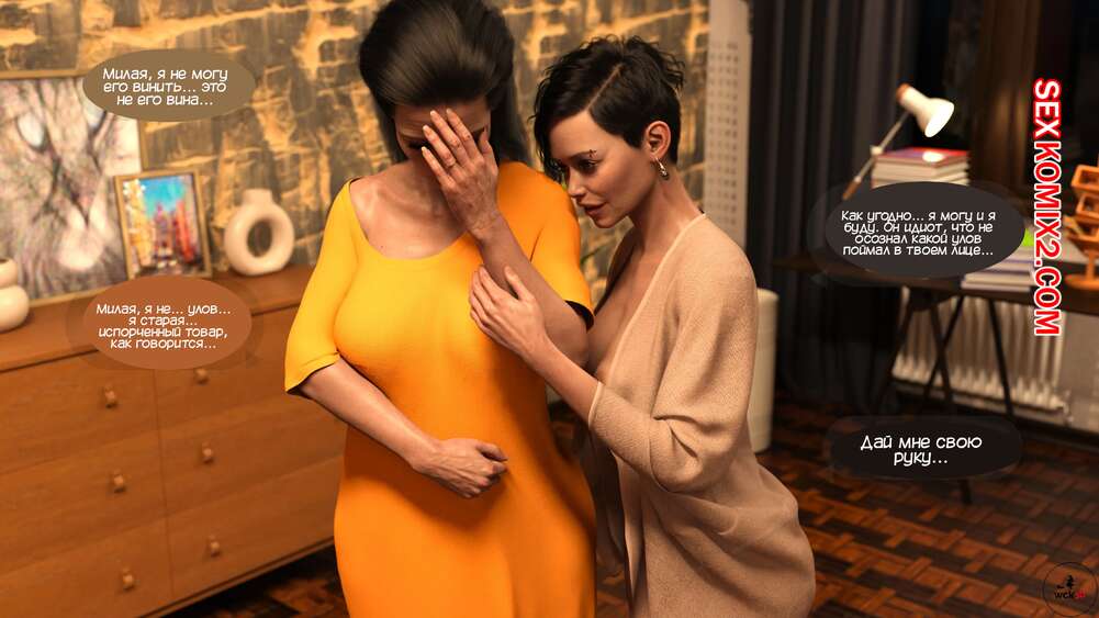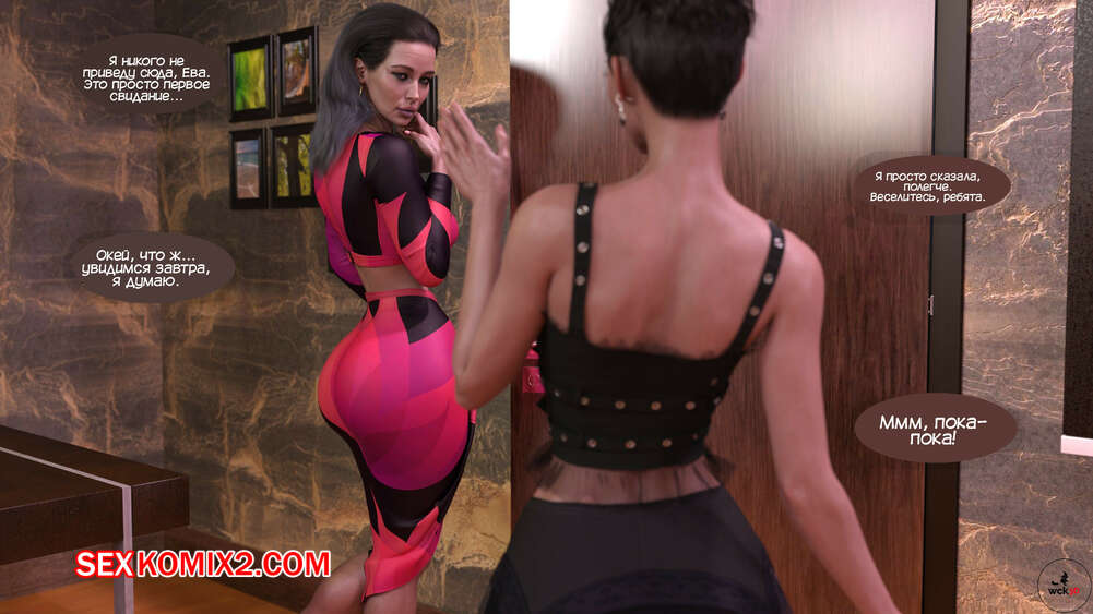 Порно комикс Между нами. Часть 2. Between Us. WCK3D Ева собрала свою горячую мамку на свидание, а сама осталась наедине с братиком. Девушка разделась и отсосала его большой хуй, после чего дала ему себя трахнуть. Когда мамочка вернулась домой, Ева узнала у нее о свидании, после чего раздела ее и стала ласкать пизденку мамочки.
