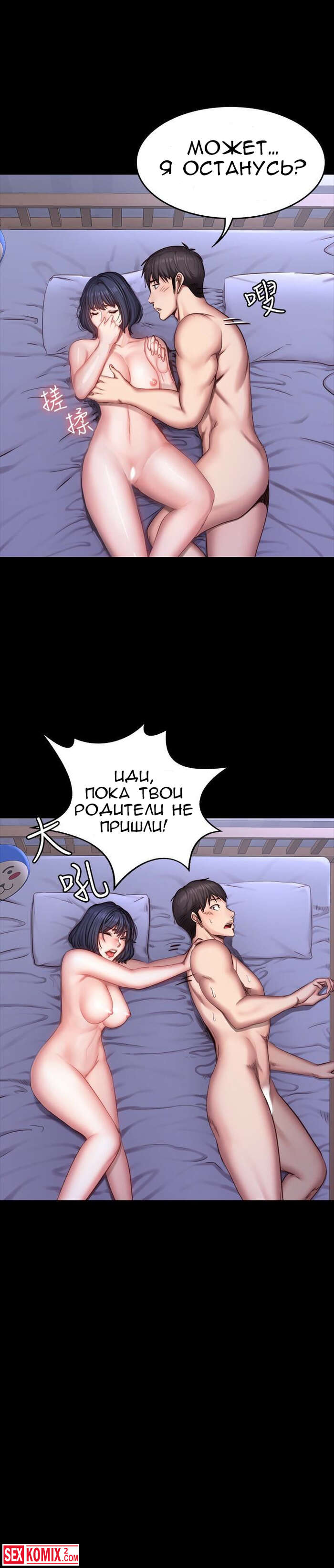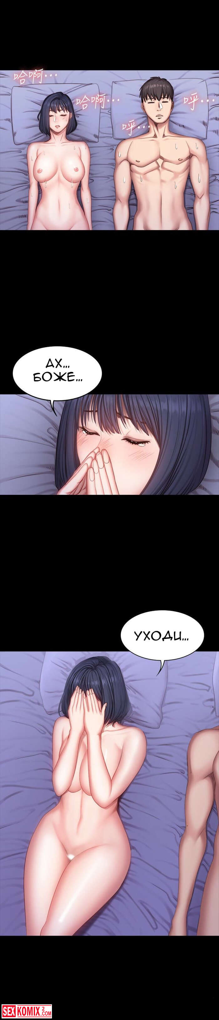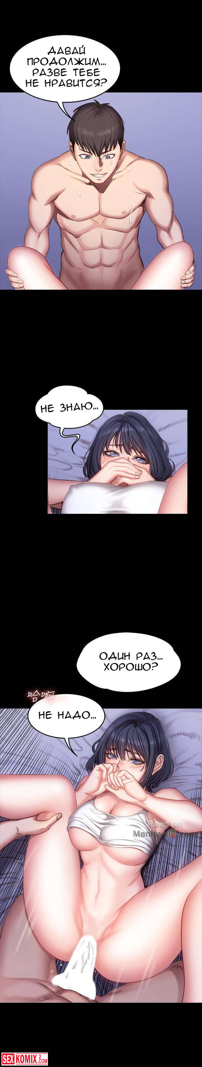 Порно комикс Фитнес. Части 24 и 25. Вернувшись домой девушка не думала, что застанет своего парня с другой девушкой в пастели. Причем её появление его даже не смутило.