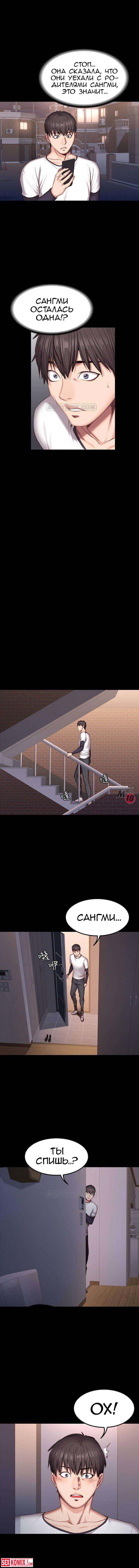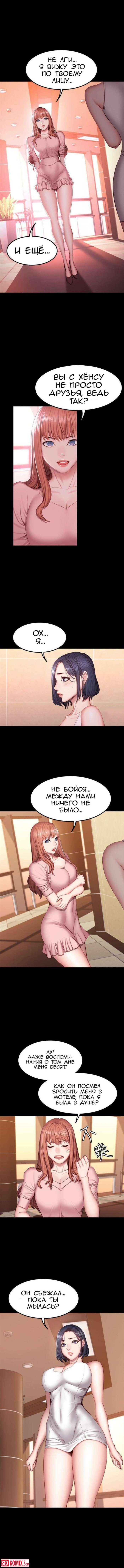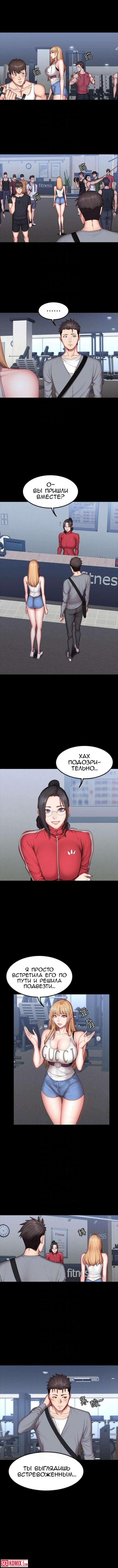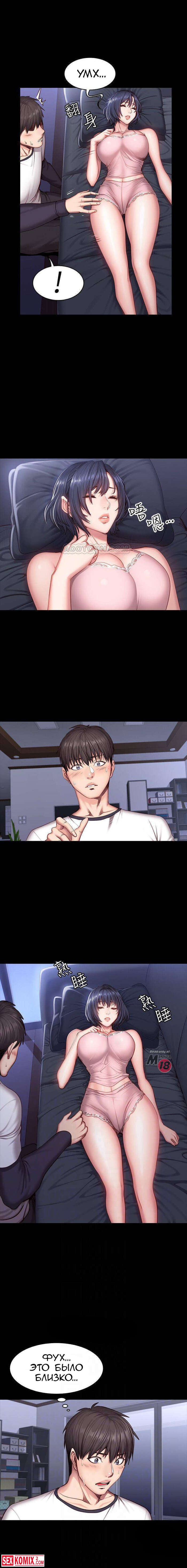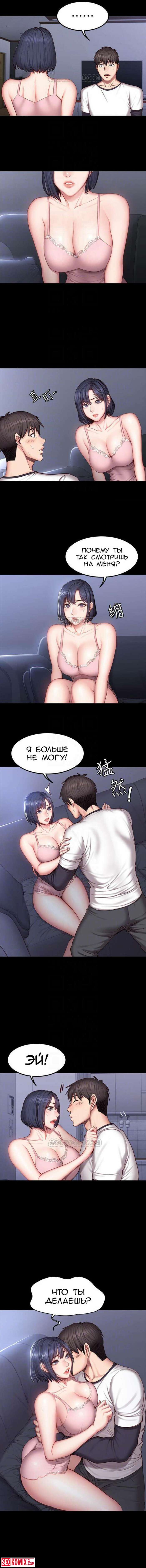 Порно комикс Фитнес. Части 33 и 34. Парень узнал, что сексуальная брюнетка осталась одна, и пошел её навестить, но она спала. Он не удержался и облапал её спящую.