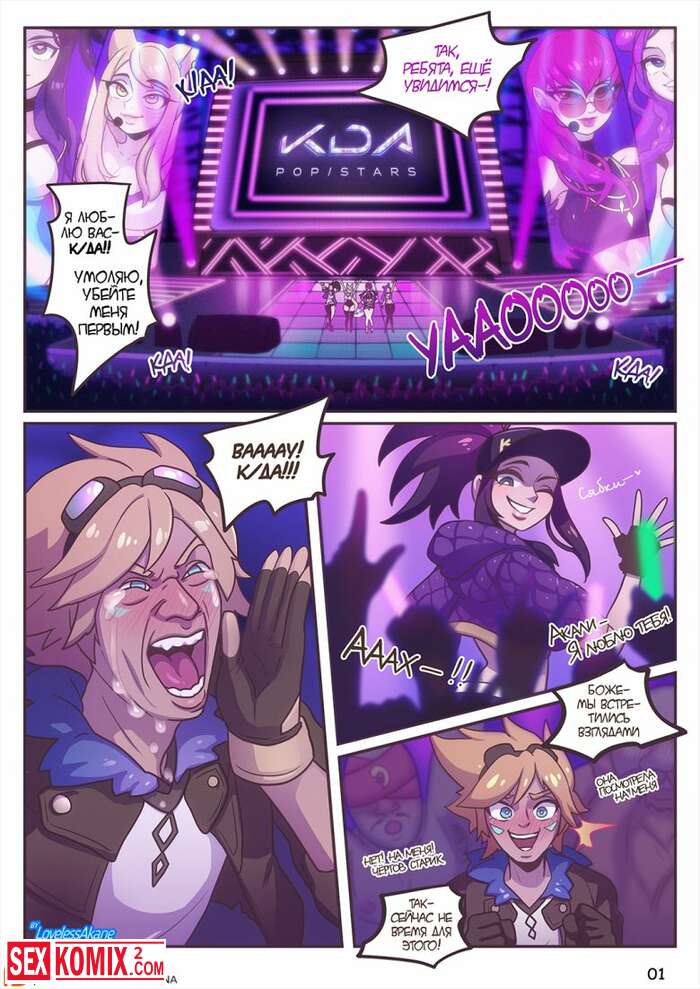 Порно комикс После вечеринки. Лига легенд. Девушки из поп группы после концерта решили отдохнуть и пригласили парней к себе домой, для развлечений.