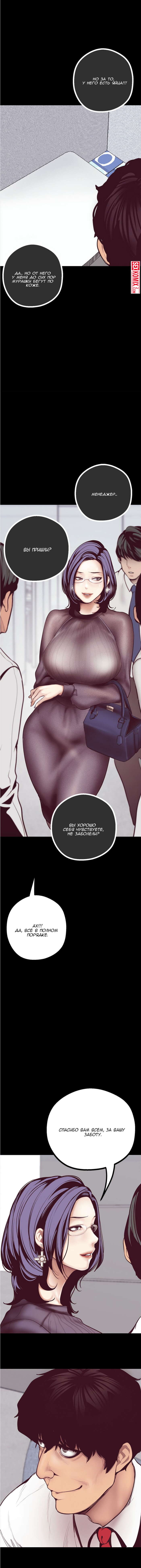 Порно комикс Прекрасный Новый Мир. Части 5 и 6. Beautiful New World. Горячая начальница проявила внимание к своем работнику и он решил, что она хочет секса с ним. Но когда он схватил милфу за сочную грудь, она дала ему пощёчину.