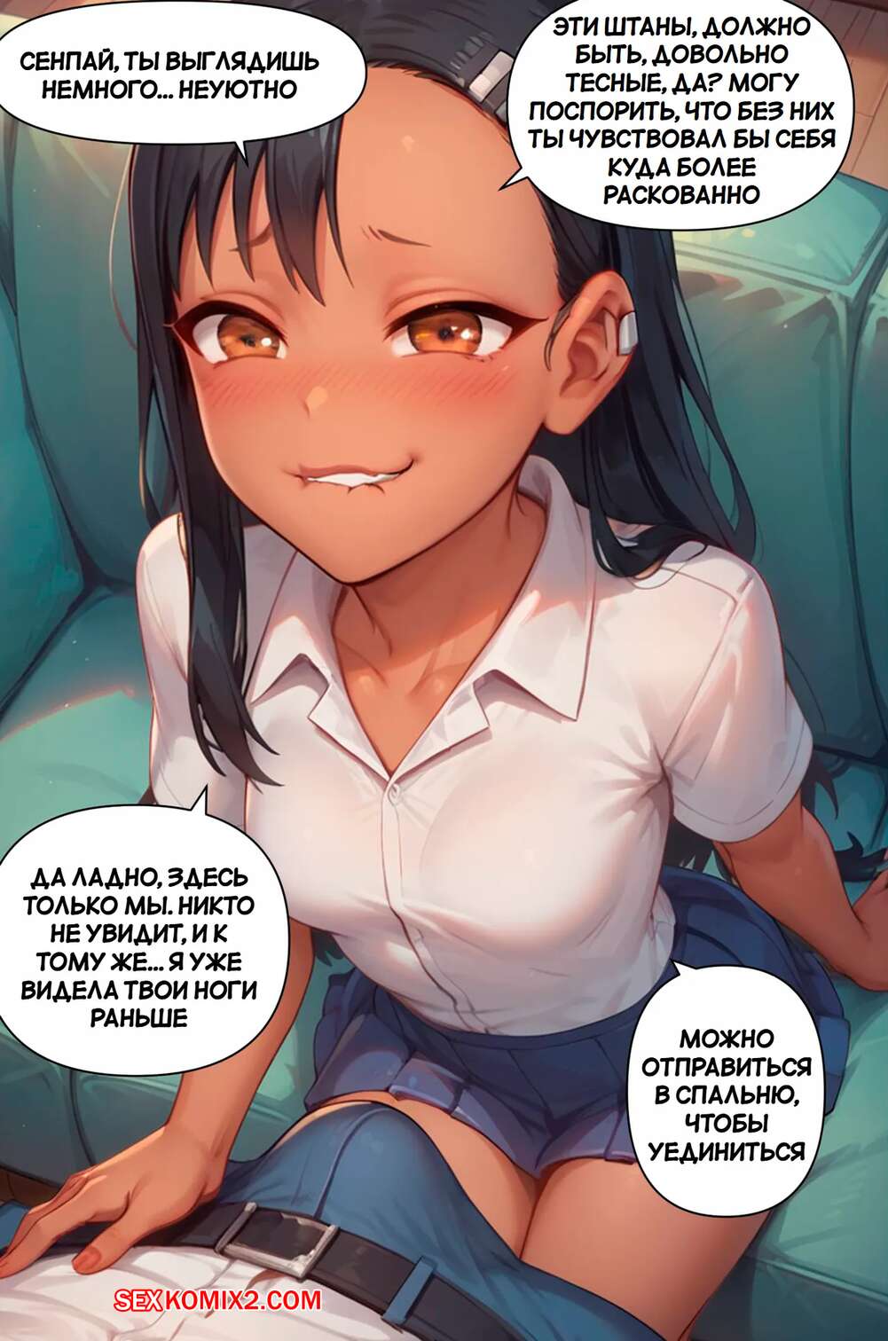 Порно комикс Нагаторо. Дни Колледжа. Часть 1. Nagatoro. College Days Горячая брюнетка Нагаторо была очень возбуждена и решила повеселиться со своим дружком. Красотка возбудила его шикарным телом, после чего стала сосать большой хуй парня.