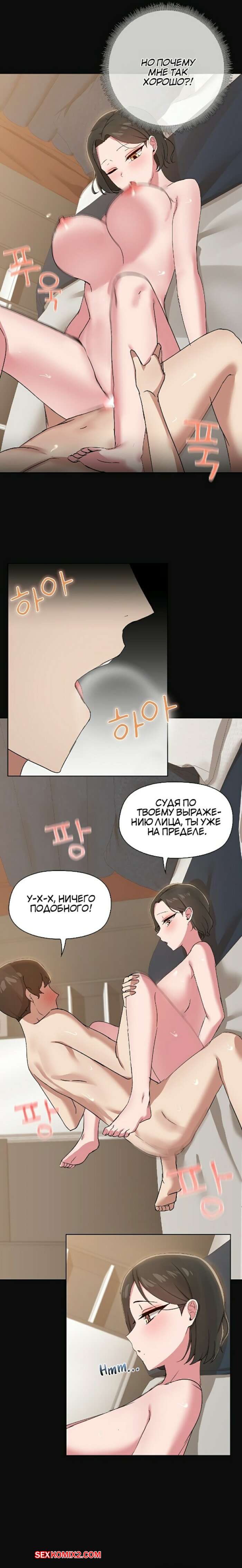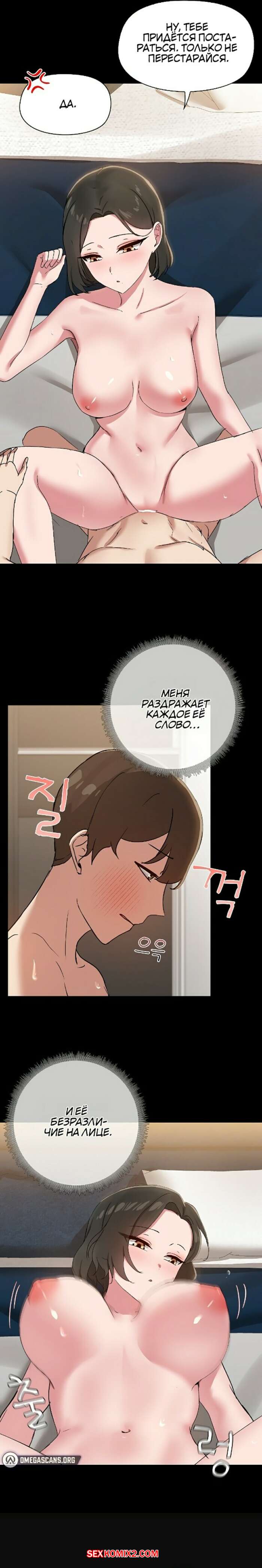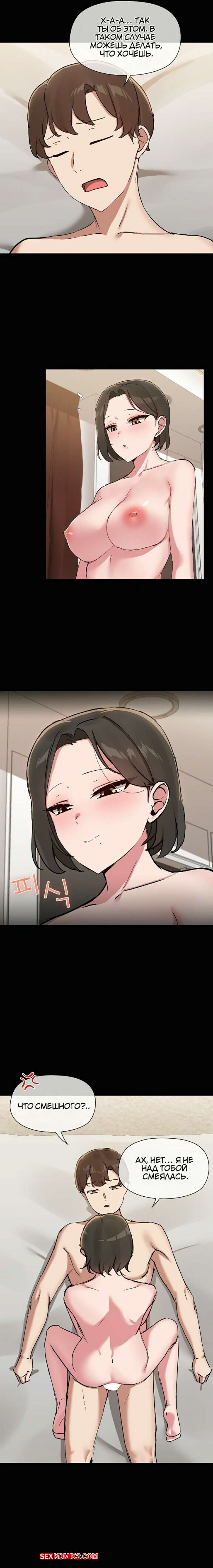 Порно комикс Общий парень. Часть 15 и 16 и 17. syeeonamchin Горячая брюнетка была очень возбуждена и хотела трахаться. Она разделась и возбудила парня шикарным телмо, после чего оседлала его большой хуй и дала себя выебать.