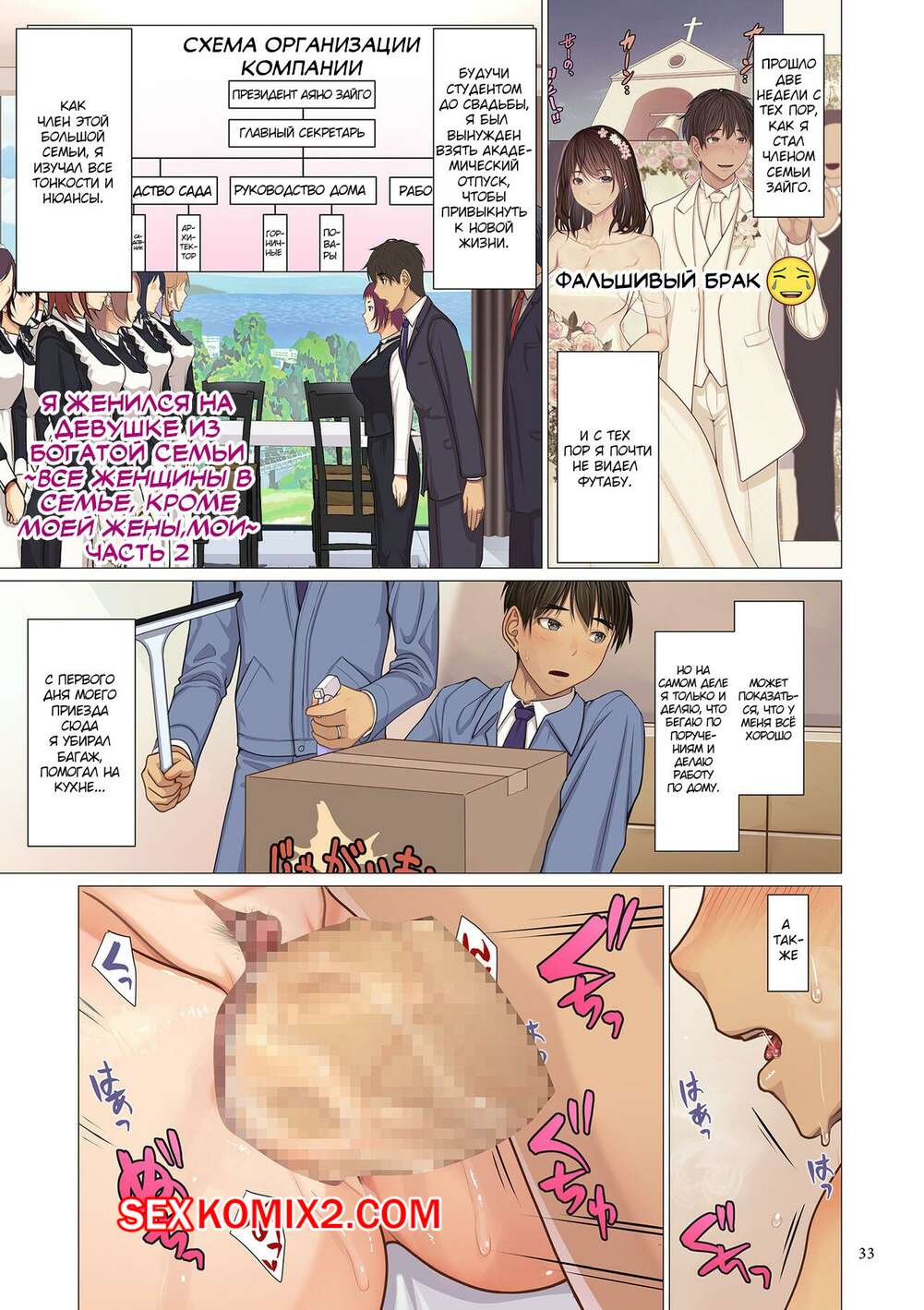 Порно комикс Я женился на девушке из богатой семьи. Часть 2. Emori Uki Горячая милфа решил добавить остроты в их секс с молодым парнем и пригласила к ним еще одну девушки. Они стали ласкать друг дружку, после чего устроили групповую еблю.