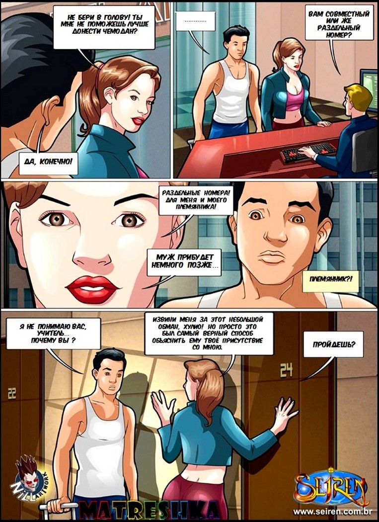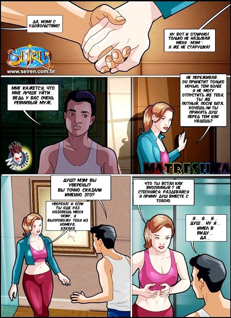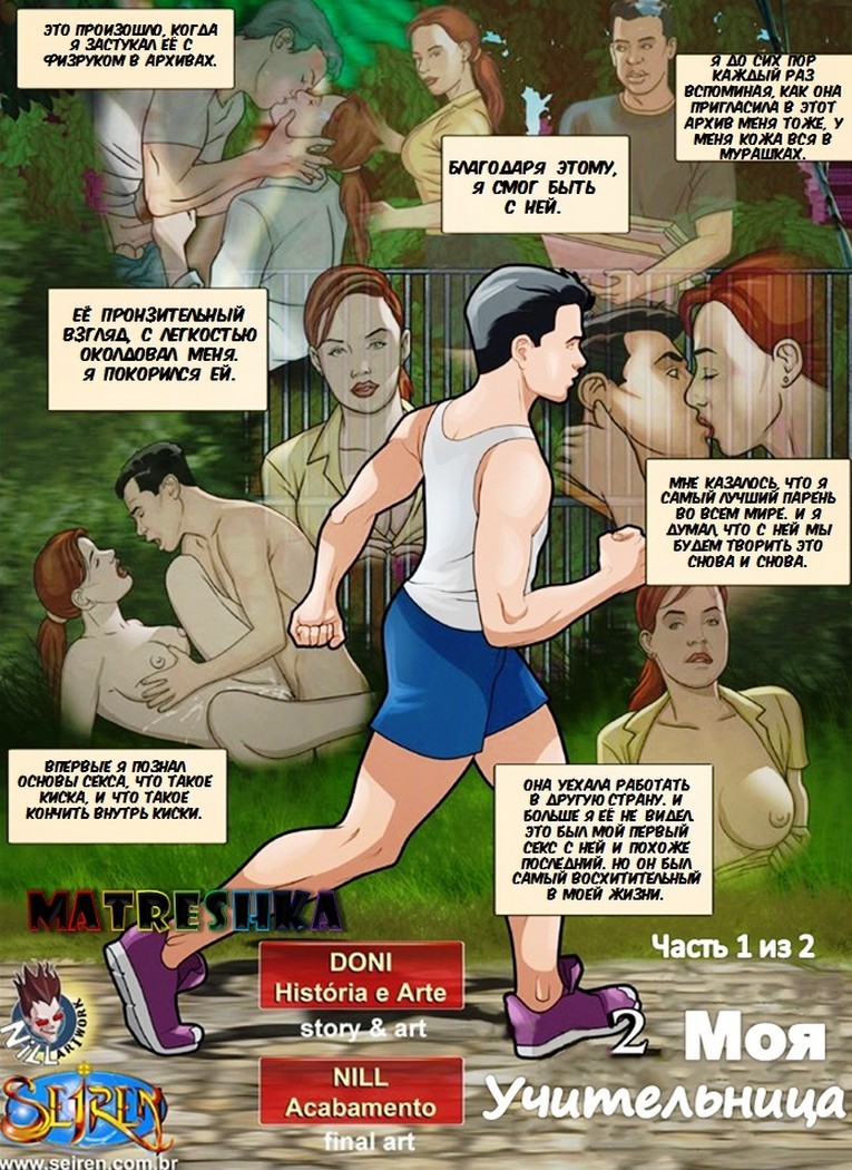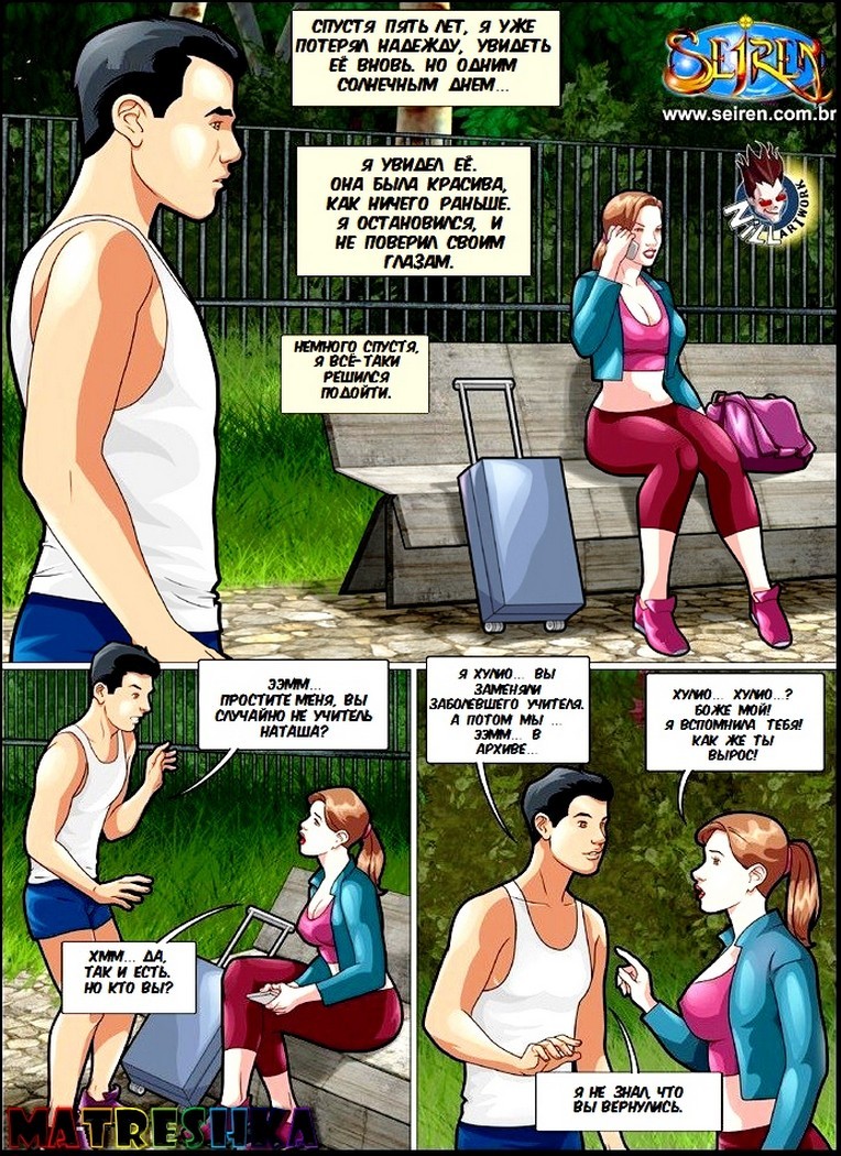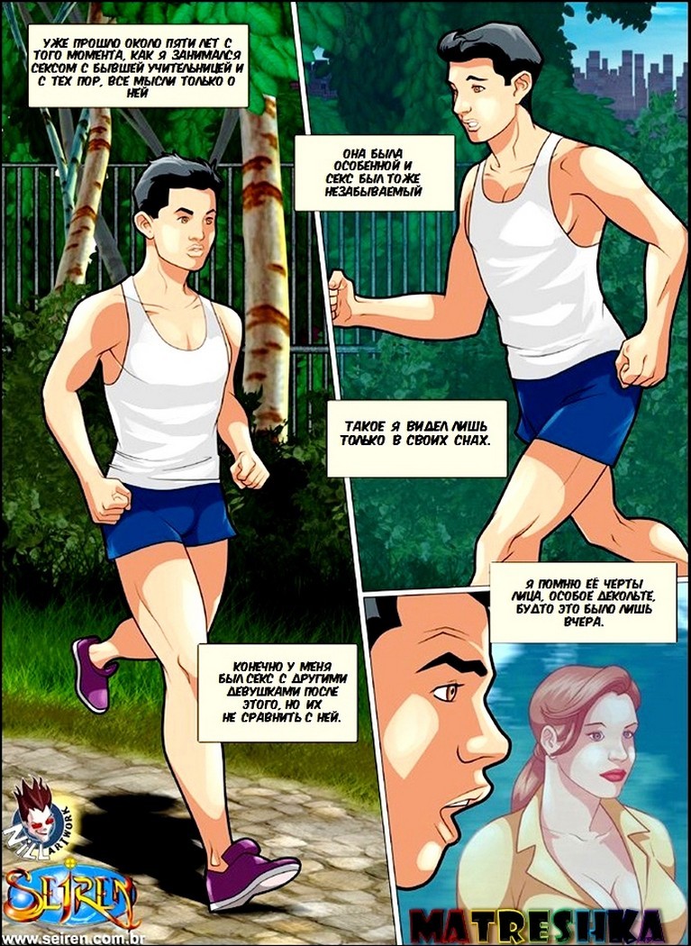 Комикс взрослое желание «Моя учительница. Часть 2. Эпизод 1». На утренней пробежке парень вспоминал как занимался сексом со своей учительницей, он очень соскучился по ее телу, и мечтает повторить это снова. Позже он заметил, что какая-то девушка сидит на лавке в парке, он узнал в ней ту самую учительницу, с которой он трахался - это был подарок судьбы! Поприветствовав ее, и узнав как дела, он выяснил, что ей негде ночевать, естественно парень пригласил ее к себе. После того как женщина приняла душ, она тоже захотела вспомнить былые времена и набросилась на своего бывшего ученика.