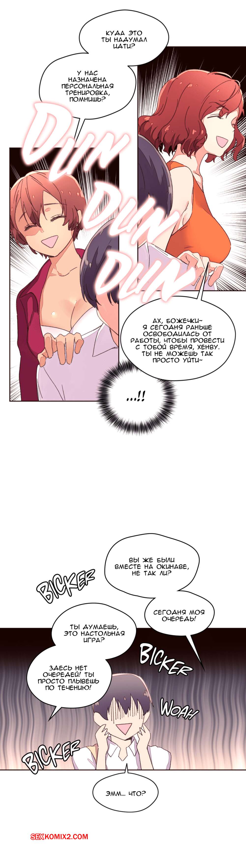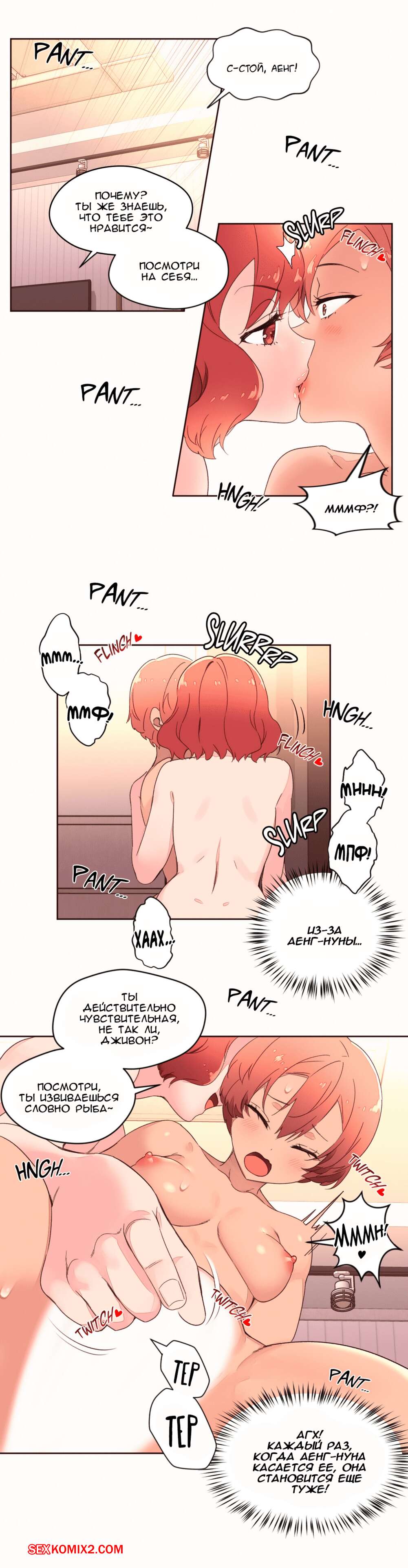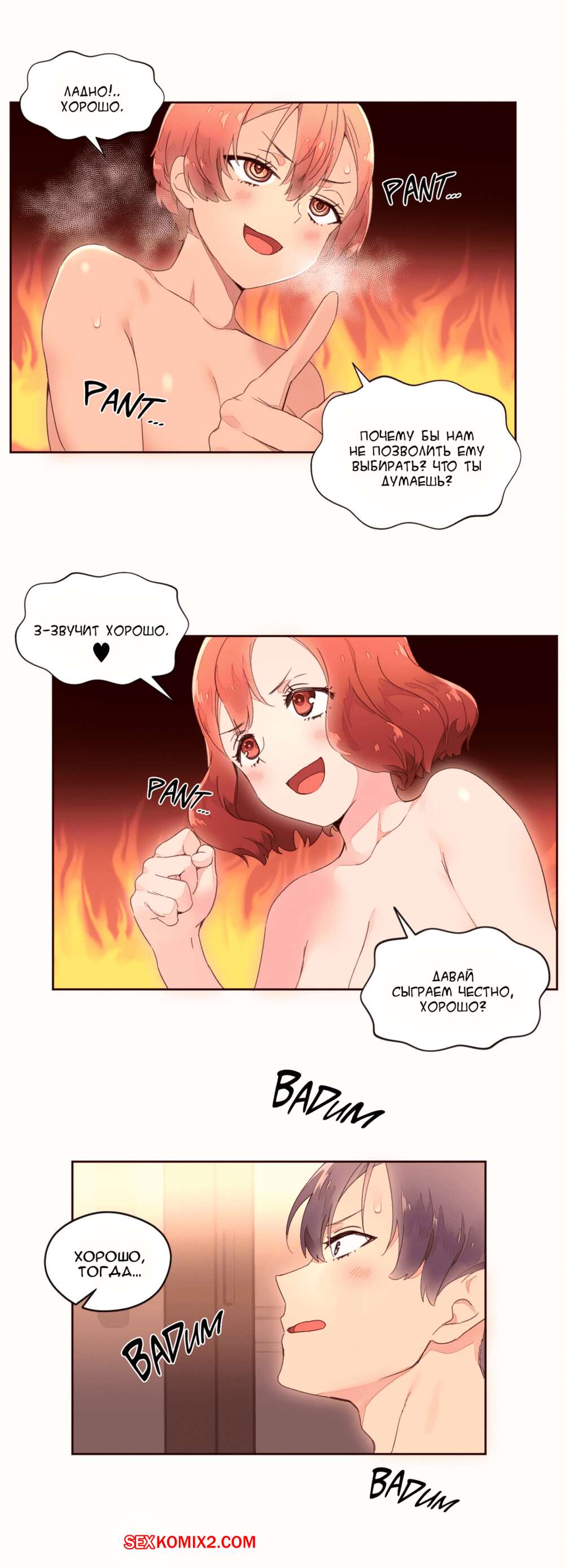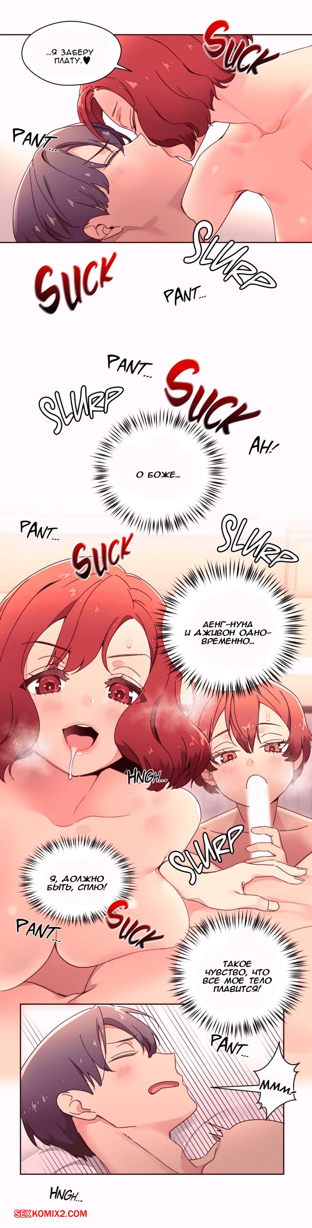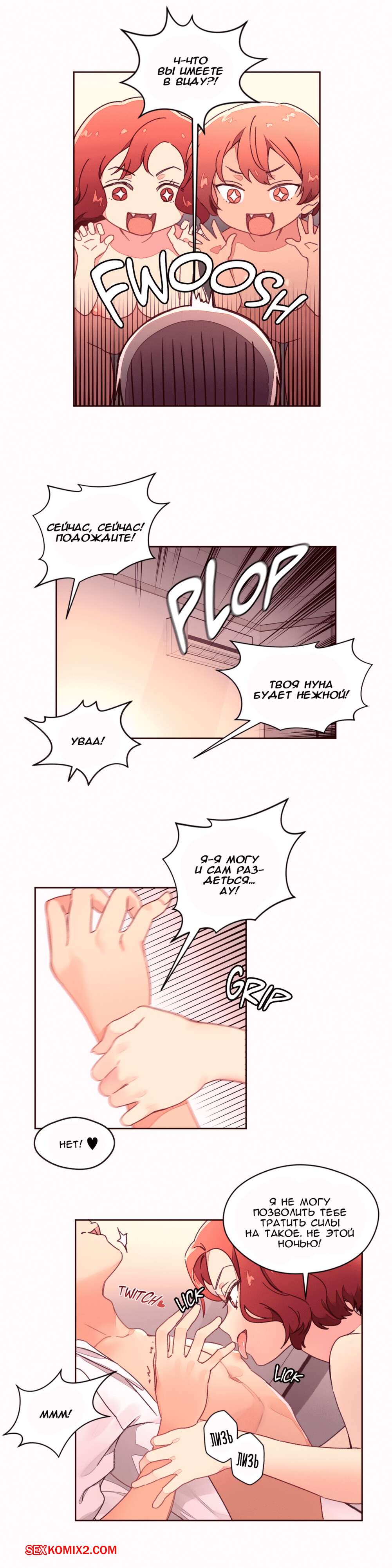 Порно комикс Феромонозависимые. Части 34 и 35 и 36. Две подружки подхватили нашего парня и возжелали поебаться с ним. Они отвели его в комнату и быстренько разделись перед, а затем принялись отсасывать его хуй, чтобы скорее он стал твердым и парень их отъебал.