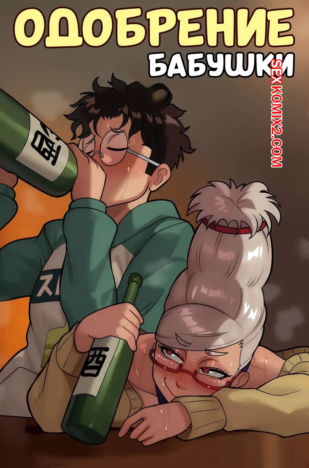 Порно комикс Dandadan. Одобрение бабушки. Grandmas approval. Suavi Cream. Горячая милфа напилась и теперь хочет секса. Она стала приставать к молодому парню и тереться о него, желая вызвать у него каменный стояк и оседлать его большой хуй.