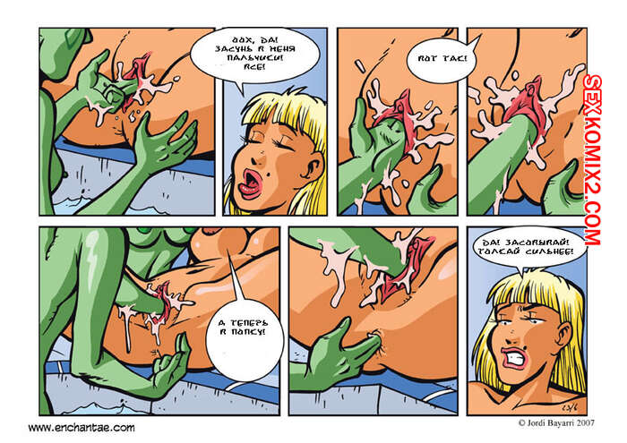 Порно комикс Энчантия. Jordi Bayarri. Enchantae. Части с 21 по 30 Красотки с зеленой кожей решили хорошенько поебаться и позвали к себе обычную девушку и парня. Они стали страстно трахаться, а затем обычная красотка надела на себя страпон и принялась ебать зеленокожую дамочку, пока ее саму сзади ебал парень.