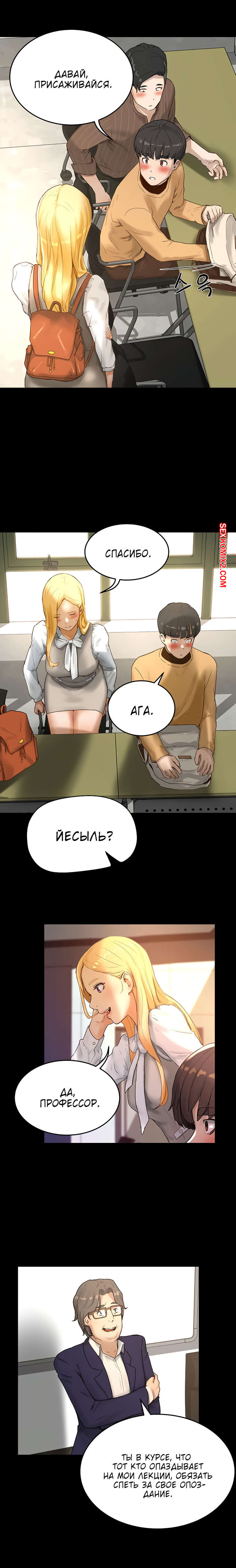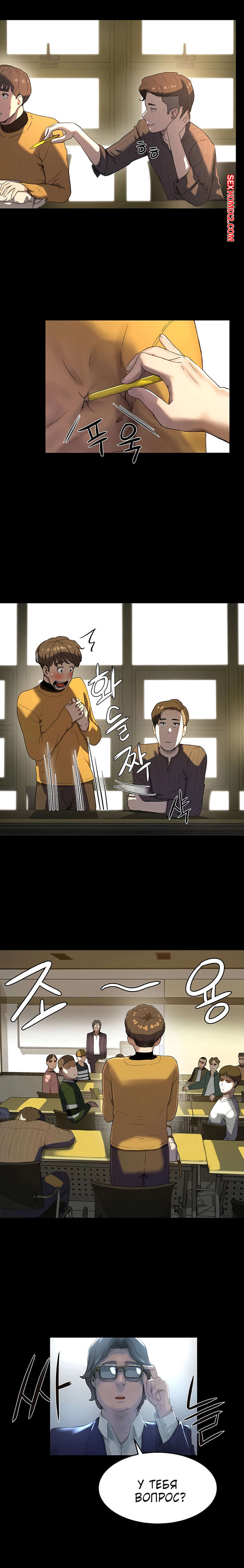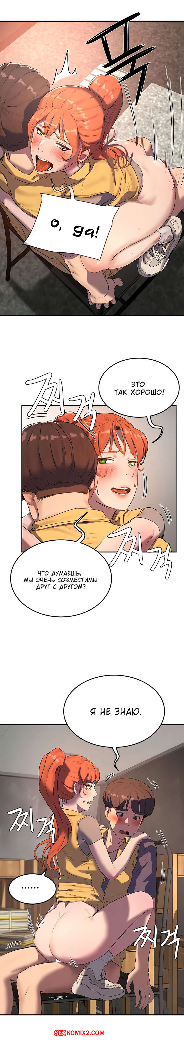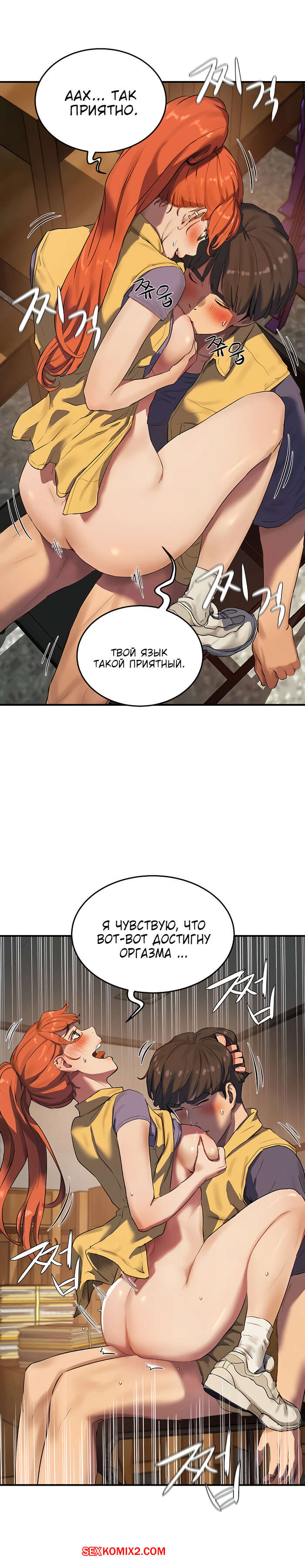 Порно комикс Летняя пора. Части 5 и 6. Summer time Парнишке и его рыжей подруге так не терпелось потрахаться, поэтому они прямо в школе решили уединиться. Там красотка усадила парня на стул и раздевшись, сверху оседлала его хуй, чтобы он ее хорошенько выебал.