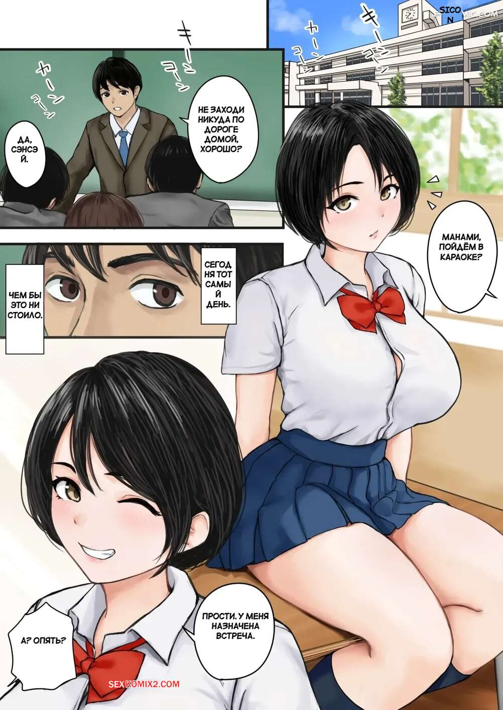 Порно комикс Сегодня я снова не смог устоять перед соблазном моей студентки. Bappusu. Горячая брюнетка пришла домой к своему учителю на дополнительное занятие и стала его соблазнять. Красотка разделась и дала учителю пососать свои сиськи, после чего он ее трахнул.