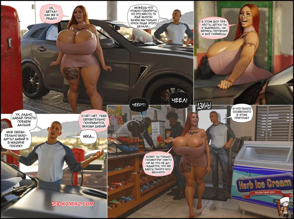 Порно комикс Объезд. Detour. GashousesushiArt Рыжая милфа заехала со своим мужем на заправку, где девушка решила спуститься в подвал. Там ее ждали большие черные члены, которые выебали сучку во все дырочки прямо на глазах ее мужа.