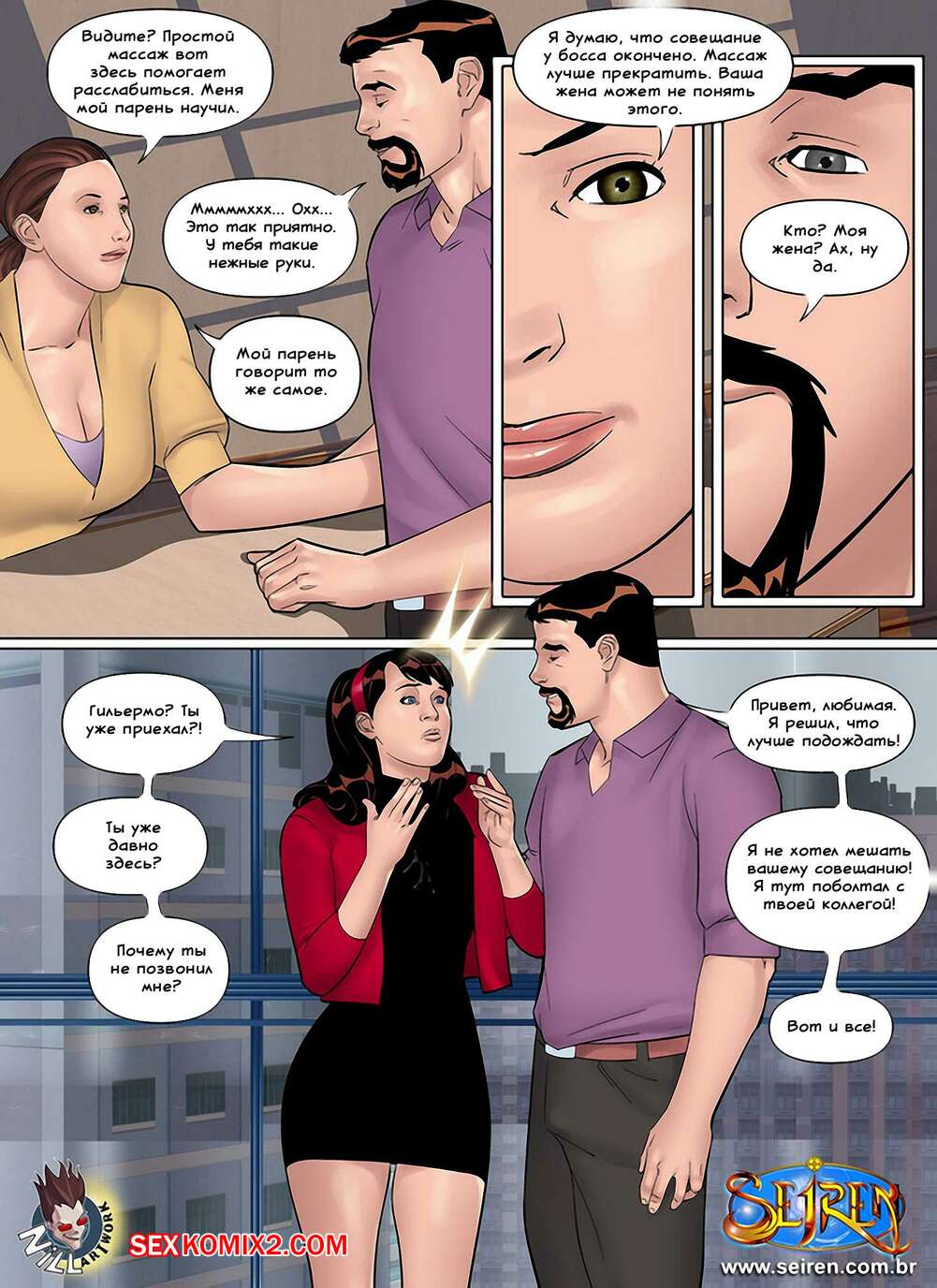 Порно комикс Спортсменка. Часть 10. Пока женщина на тренировке отрабатывает удары её муж в своем офисе. У него выдалась несколько свободных минут и он решил расслабиться. Пригласил в свой кабинет секретаршу и трахнул ее на столе.