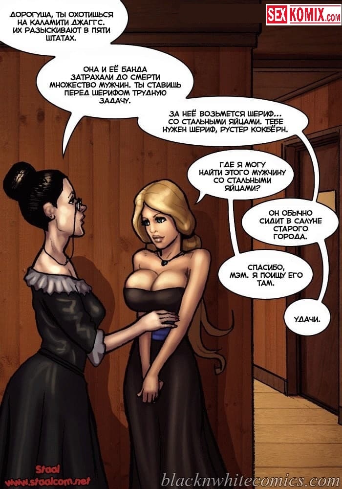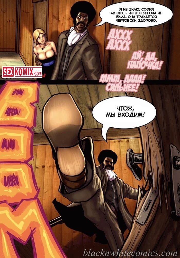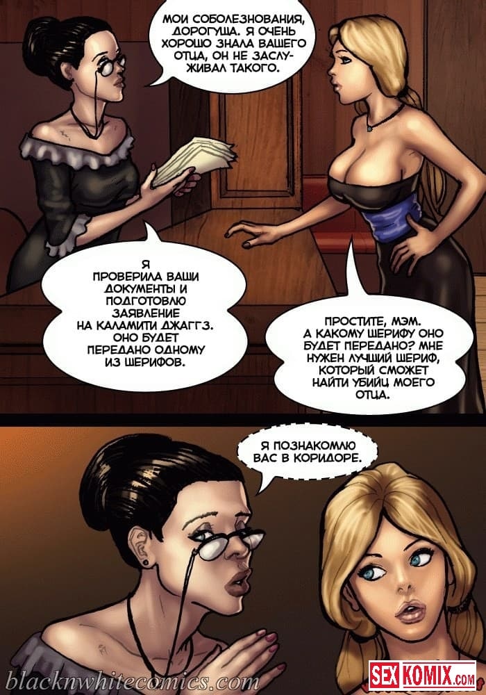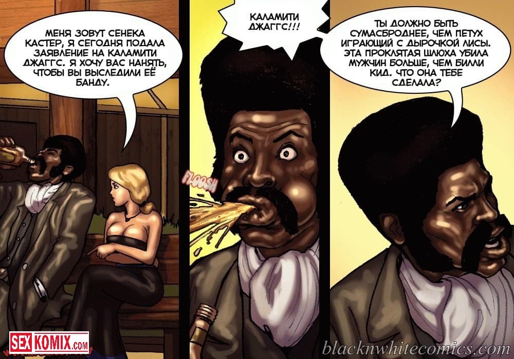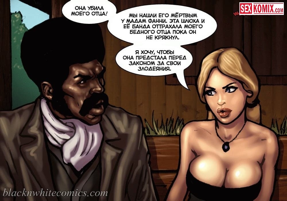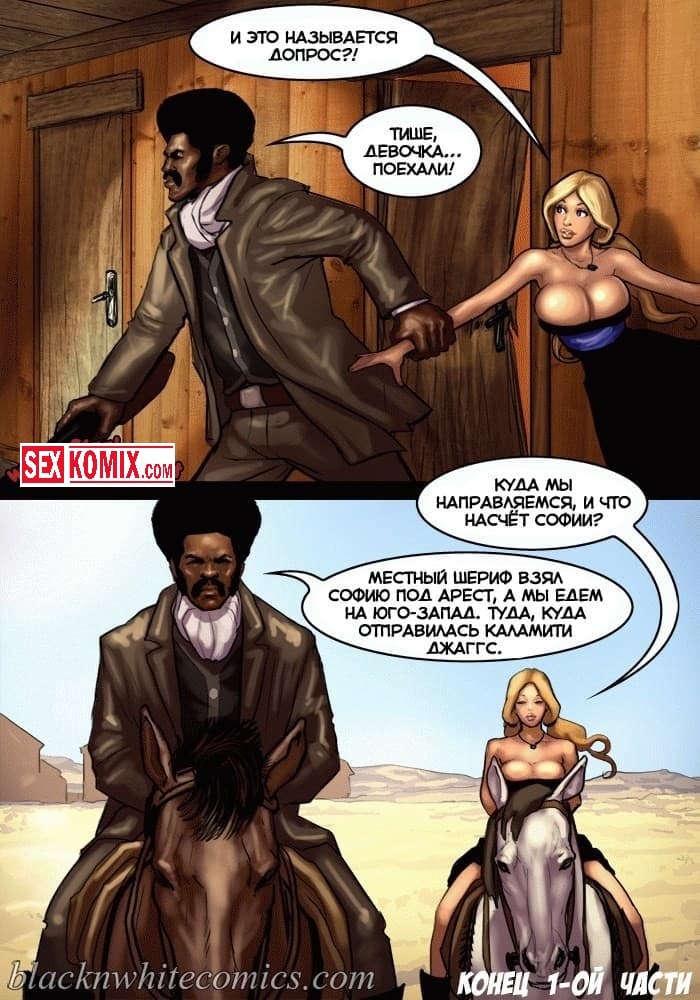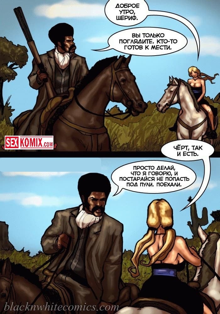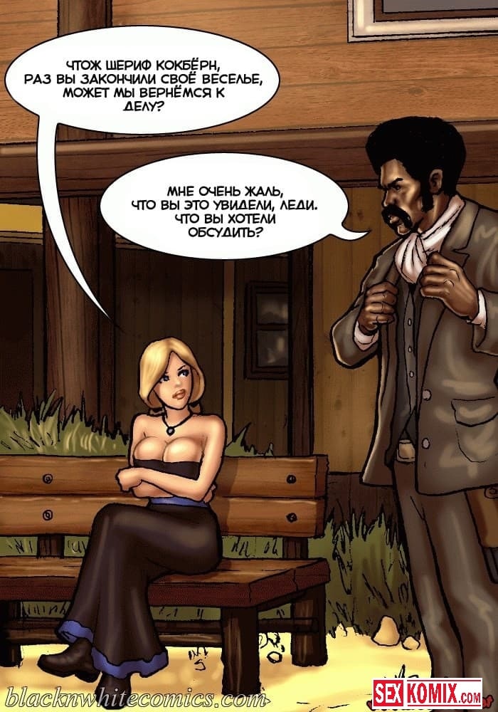 Порно комикс Честный коп. Часть 1. В старом Техасе повсюду творится беззаконие, и каждое убийство всем сходит с рук. Сексуальные девушки не смогли простить убийство своего отца, и наняли на работу чернокожего полицейского, с большим членом, для того чтобы тот нашел преступника, и сделал так, чтобы тот предстал перед законом. Развратный чернокожий ковбой в качестве оплаты захотел сексуальные тела этих девушек, они с огромной радостью рассчитались с ним по полной программе.