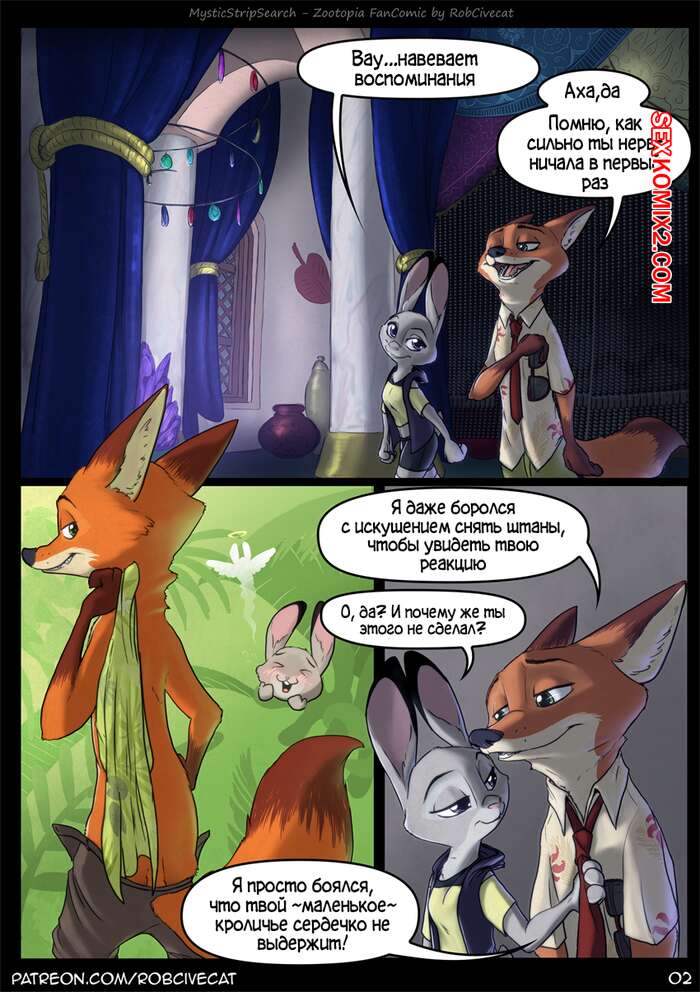 Порно комикс Зверополис. Мистический поиск полосы. Mystic Strip Search Парень лис отправился со своей подругой крольчихой на поиски чегото важного. Во время их похода им постоянно хотелось ебаться, поэтому они не сдерживались, а занимались горячей еблей.