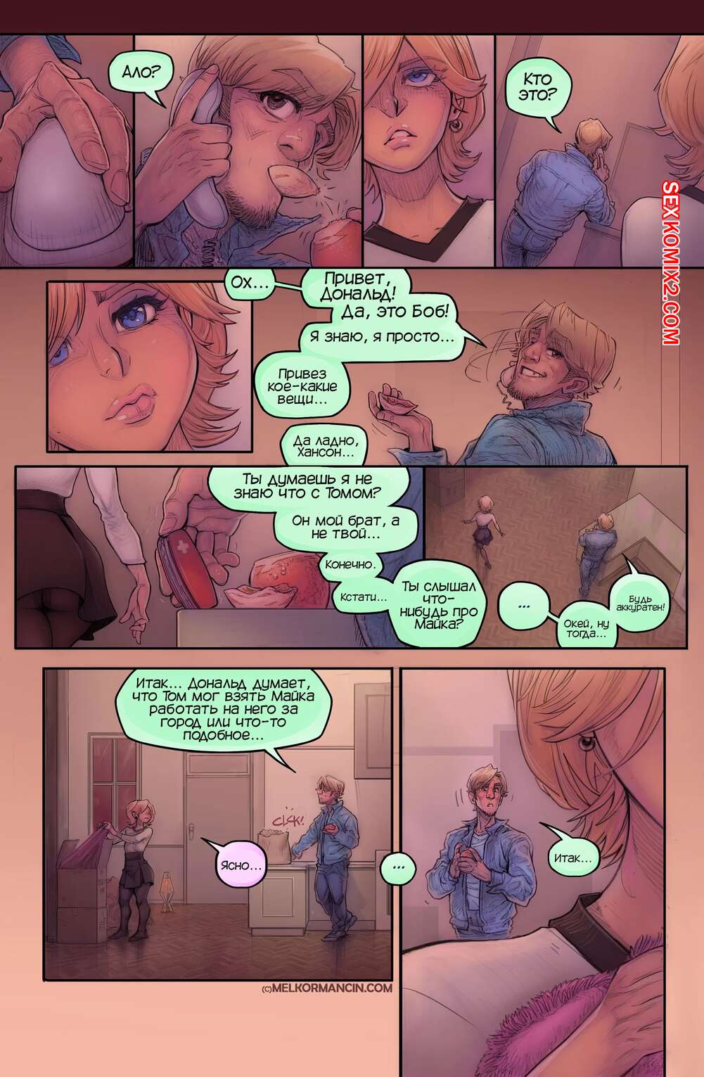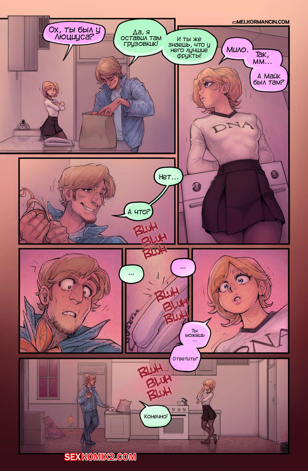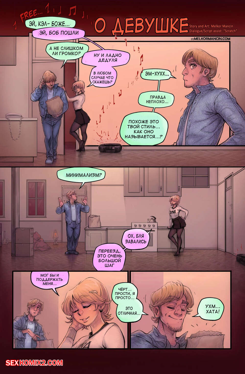 Порно комикс О девушке. About a girl. Melkor Mancin Парнишка приехал к своей подруге на новоселье. По дороге он прикупил фруктов, чтобы хорошо провести с ней время, но внезапно раздался телефонный звонок, который их потревожил..