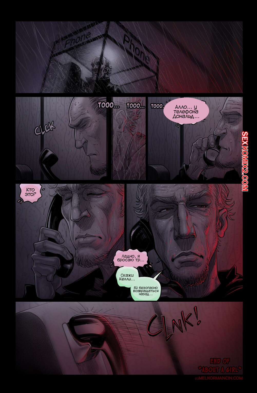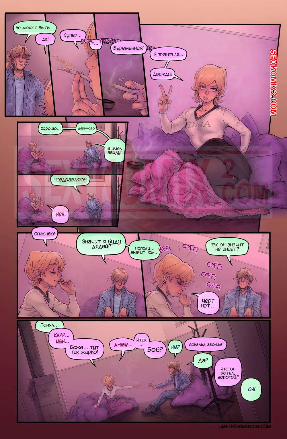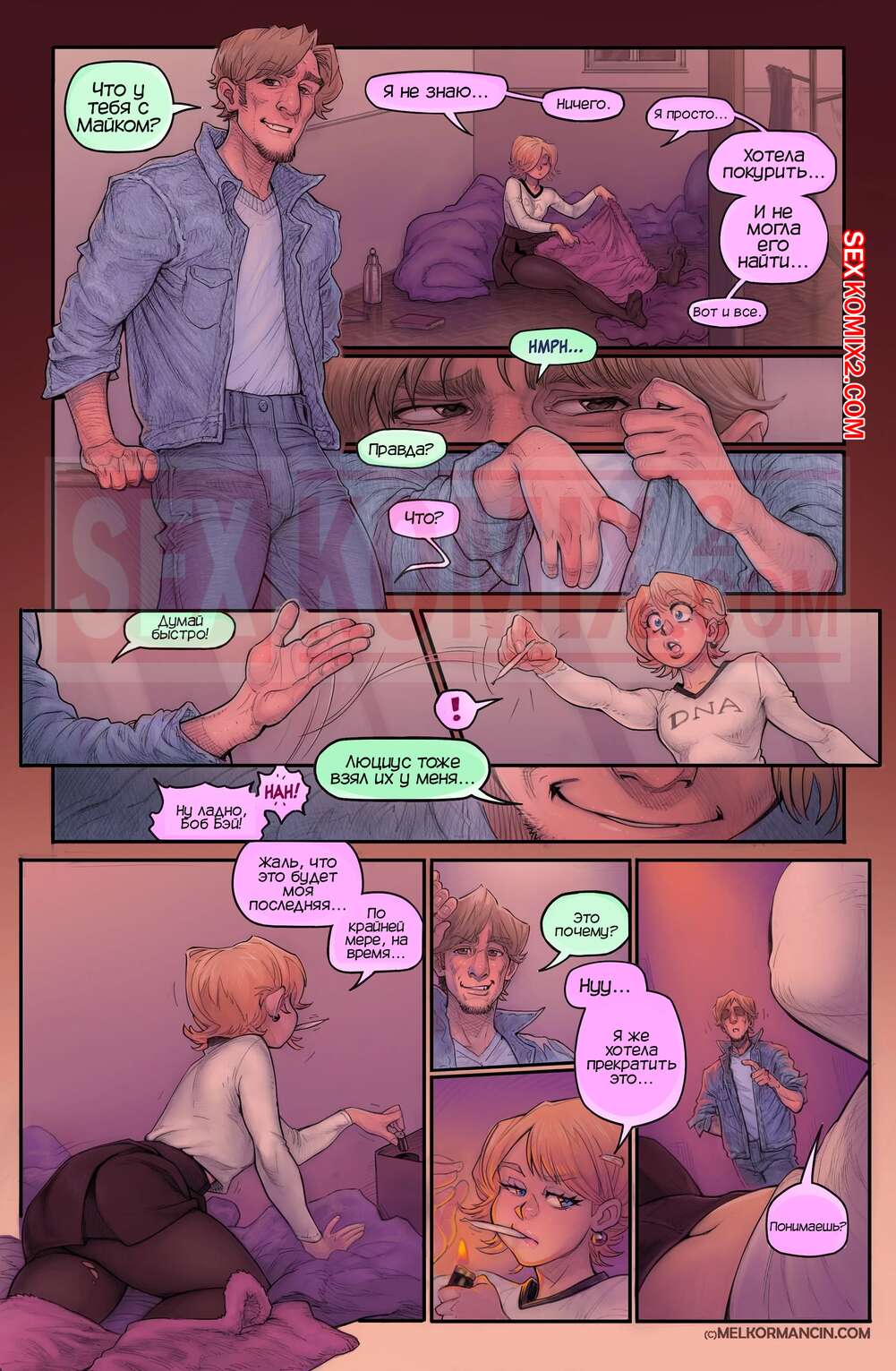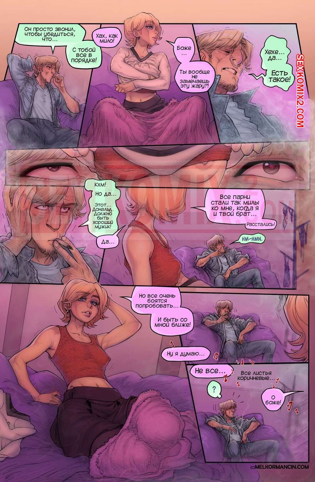 Порно комикс О девушке. About a girl. Melkor Mancin Парнишка приехал к своей подруге на новоселье. По дороге он прикупил фруктов, чтобы хорошо провести с ней время, но внезапно раздался телефонный звонок, который их потревожил..