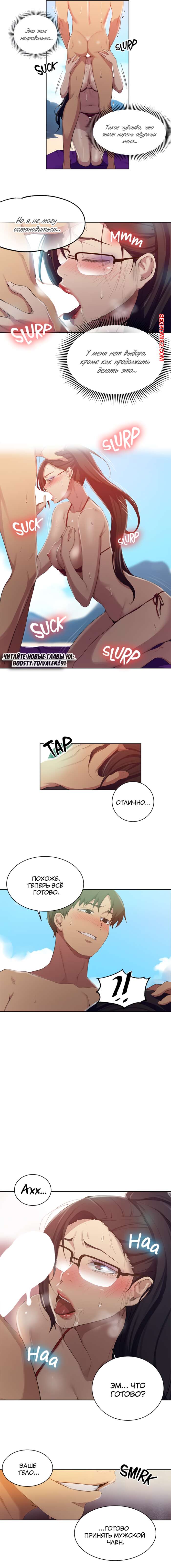 Порно комикс Тайное обучение. Часть 119. SecretClass Парень стал натирать горячую красотку брюнетку кремом от загара, а затем стал ласкать ее пизденку, от чего она очень возбудилась. Парень достал свой большой хуй и дал ей отсосать у него.