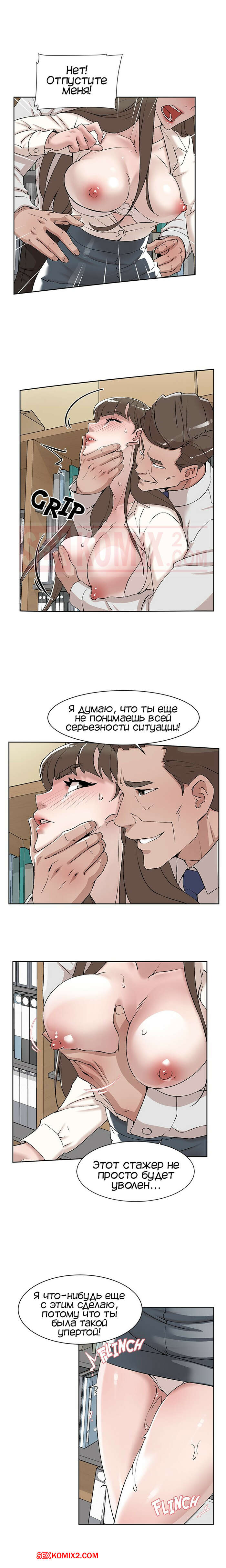 Порно комикс Её 4 размер. Часть 121. Her 4 Incher Парнишка пошел искать свою подругу, которая была закрыта в рабочей комнате с боссом. Он продолжал до нее домогаться и звать с ним ебаться, угрожая главному герою.
