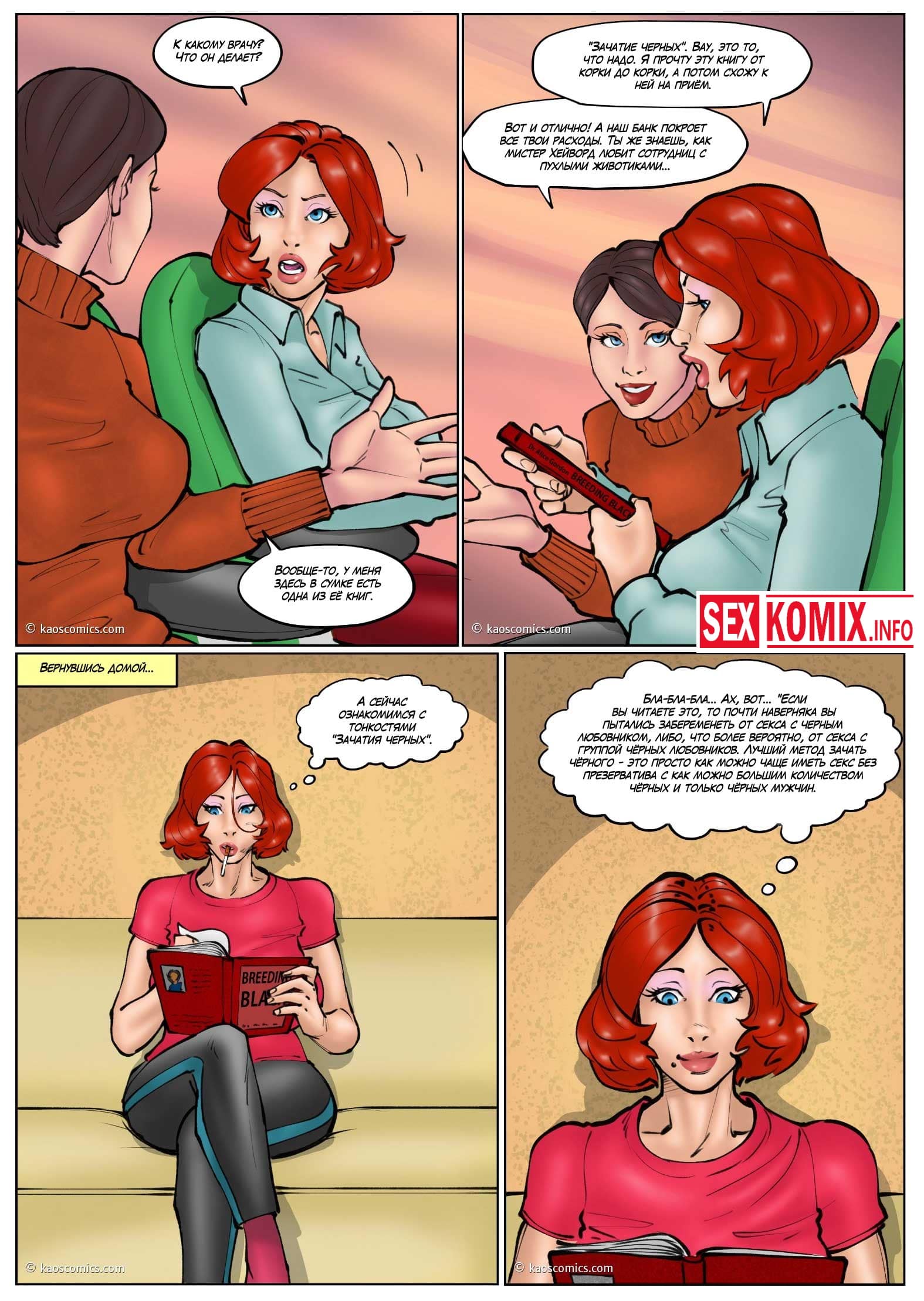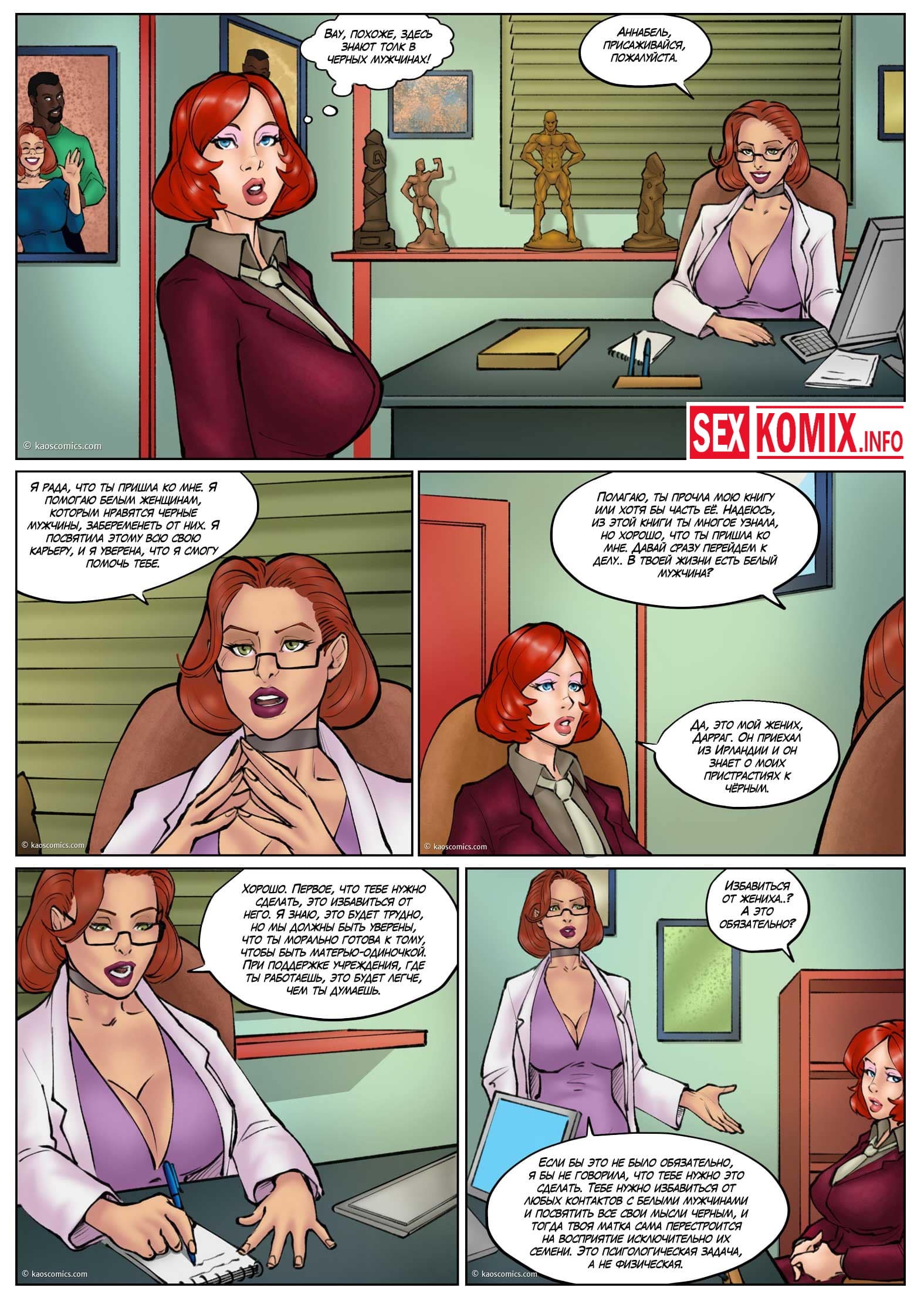 Порно комикс Новая жизнь Аннабель. Часть 3. Красотка с шикарным телом и рыжими волосами продолжает своё шествие в мире похоти и беспорядочного секса. Она стала своей среди таких же девушек, которые ублажают богатых чернокожих мужчин пачками. Теперь Аннабель посещает секс вечеринке в окружении своих новых развратных подруг и веселье проходит ещё лучше. И мужчинам нравиться, что их окружает несколько красоток.