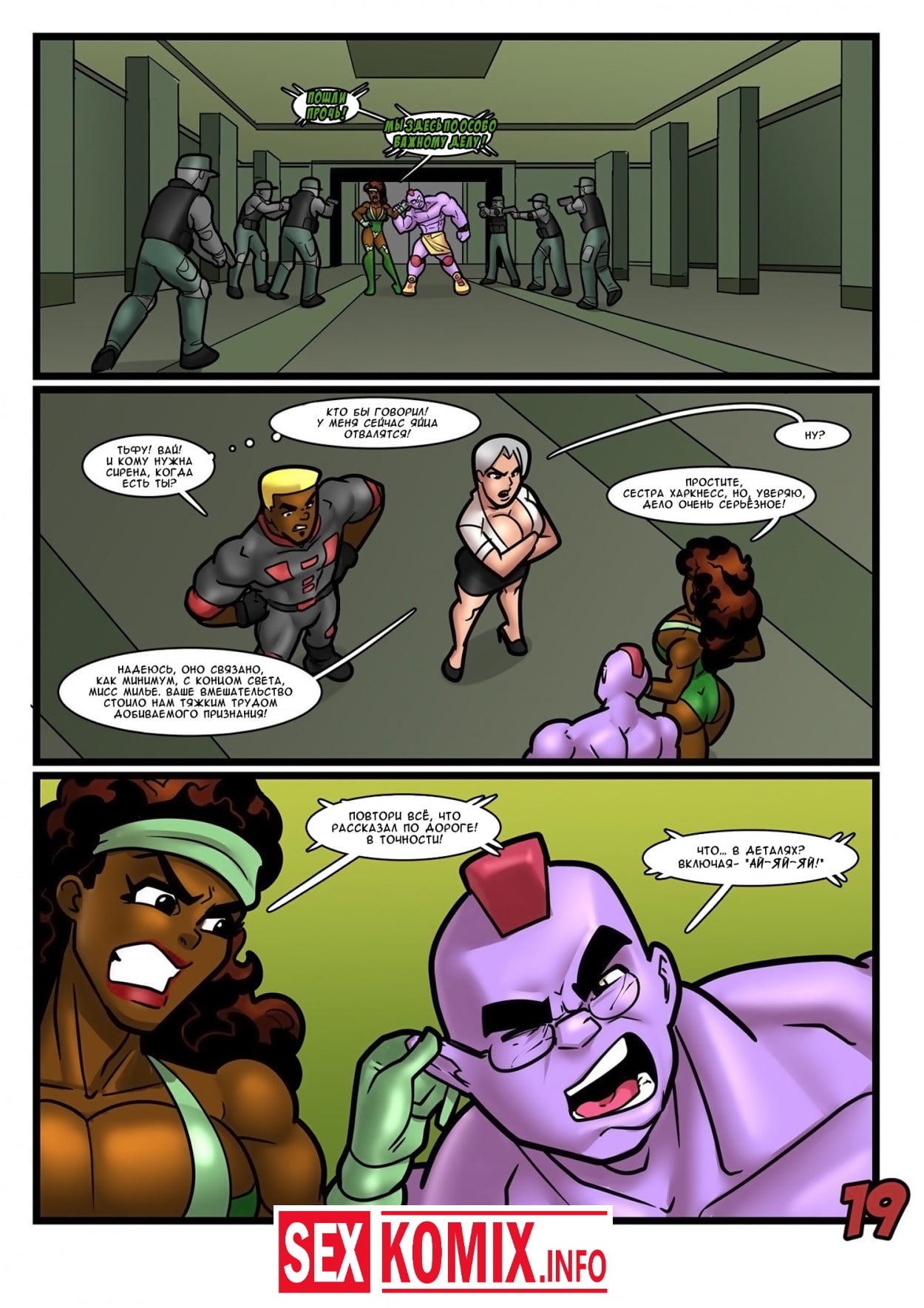 Порно комикс Геройские хроники. Поцелуй красной георгины. Два супер героя мужчина о женщина встретились на крыше небоскреба, ночь была тихая и значит можно расслабиться и заняться сексом. Девушка старается побить свой собственный рекорд, засунув огромный член своего напарника все глубже в свою глотку. После сочного отсоса их спортивные тела переплетаются и герои занимаются страстным сексом.